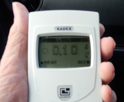 遺構となっている荒浜小学校近くにおける空間放射線量は、0.10μSv/hであった。