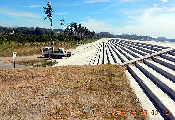 | <総合メニューへ> 多賀城市 塩釜市 利府町 七ヶ浜町1 七ヶ浜町2 七ヶ浜町3 七ヶ浜町4 七ヶ浜町5 松島町1 松島町2 東松島市1 東松島市2 東松島市3 ◆七ヶ浜町沿岸3 ◆七ヶ浜町の堤防 ![]() 出典:グーグルマップ ![]() 出典:グーグルマップ ◆七ヶ浜町菖蒲田海浜公園の整備方針 下は七ヶ浜町の南東部の菖蒲田海浜公園の整備方針である。その中心は海浜の海水浴場に沿ってつくられた大堤防である。 ![]() 出典: 菖蒲田浜・汐見台南 - 七ヶ浜町整備方針 下は3.11の後、構築した海岸堤防の竣工記念碑である。 七ヶ浜町では、菖蒲田浜・汐見台南 - 七ヶ浜町整備方針に沿い、南東部の海浜を津波対策としてだけでなく、町を挙げて町民、県民、観光客らのリゾートを考慮した親水性、リクレーション性の高い堤防を設計、施工していた。 ![]() 撮影:池田こみち Nikon Coolpix S9900 2018-6-29 菖蒲田海浜に整備された大堤防。 ![]() 撮影:青山貞一 Nikon Coolpix S9900 2018-6-29 下は真夏の海水浴時の風景です。 ![]() 出典:グーグルマップストリートビュー 2016年7月 ![]() 出典:グーグルマップストリートビュー 2016年7月 ![]() 撮影:池田こみち Nikon Coolpix S9900 2018-6-29 ![]() 撮影:青山貞一 Nikon Coolpix S9900 2018-6-29 ![]() 撮影:青山貞一 Nikon Coolpix S9900 2018-6-29 ![]() 撮影:青山貞一 Nikon Coolpix S9900 2018-6-29 海岸一帯で使える無料のWiFiが用意されている。 ![]() 撮影:青山貞一 Nikon Coolpix S9900 2018-6-29 堤防のすぐ内側(陸側)にある家の外壁に3.11津波が来た時の高さの表示があった。 ![]() 撮影:青山貞一 Nikon Coolpix S9900 2018 おおよそ5mか。 ![]() -6-29 ![]() 撮影:池田こみち Nikon Coolpix S9900 2018-6-29 下は3.11津波による犠牲者の慰霊碑である。七ヶ浜町では3.11により55人の犠牲者が出ている。 ![]() 撮影:青山貞一 Nikon Coolpix S9900 2018-6-29 ここでの空間放射線量は、0.10μSv/hであった。東京のほぼ2倍の線量である。 ![]() 撮影:青山貞一 Nikon Coolpix S9900 2018-6-29 七ヶ浜町4につづく |
