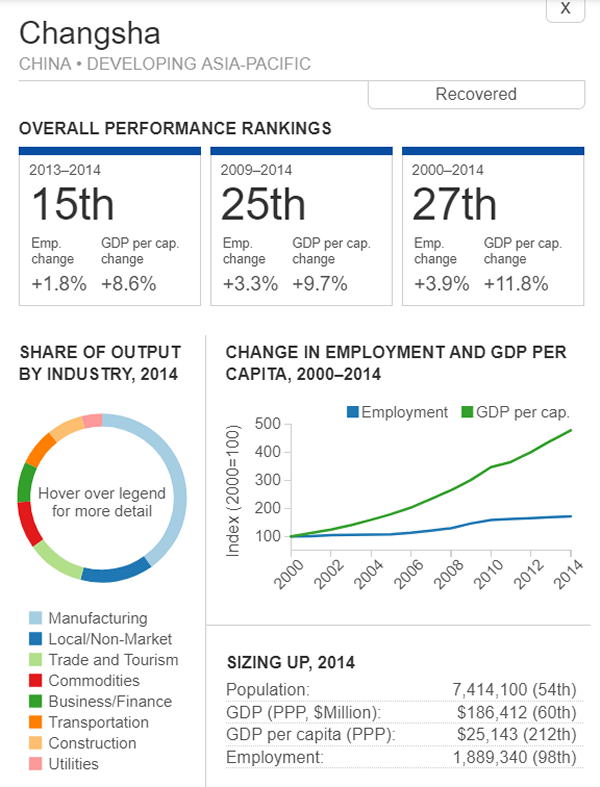 <世界300都市経済圏ランクマップ> 総合・一人当たりGDP・雇用 オリジナル出典:米国ブルッキングス研究所 第1位〜第50位 調査結果(総合、2000年〜2014年)を見てみます。 中国 東莞都市圏(1位/300) ![]() 中国 済南都市圏(2位/300) ![]() 中国 蘇州都市圏(3位/300) ![]() 中国 アモイ都市圏(4位/300) ![]() 中国 無錫都市圏(5位/300) ![]() 中国 福州都市圏(6位/300) ![]() 中国 杭州都市圏(7位/300) ![]() 中国 常州都市圏(8位/300) ![]() 中国 中山都市圏(9位/300) ![]() 中国 合肥都市圏(10位/300) ![]() 中国 深セン大都市圏(11位/300) ![]() 中国 成都都市圏(f第12位/300) ![]() 中国 南通都市圏(13位/300) ![]() 中国 徐州都市圏(14位/300) ![]() 中国 温州都市圏(15位/300) ![]() 中国 南寧都市圏(16位/300) ![]() 中国 煙台都市圏(17位/300) ![]() 中国 昆明都市圏(18位/300) ![]() 中国 南京都市圏(19位/300) ![]() 中国 ウルムチ都市圏(20位/300) ![]() 中国 ![]() 中国 青島都市圏(22位/300) ![]() マカオ 都市圏(23位/300) ![]() 中国 福州都市圏(24位/300) ![]() 中国 バトゥー都市圏(25位/300) ![]() 中国 広州市圏(26位/300) ![]() 中国 長 沙都市圏(27位/300) ![]() 中国 西安都市圏(28位/300) ![]() 中国 フヘハト都市圏(29位/300) ![]() 中国 南昌都市圏(30位/300) ![]() 中国 東営都市圏(31位/300) ![]() 中国 珠海都市圏(32位/300) ![]() 中国 大連都市圏(33位/300) ![]() 中国 仏山都市圏(34位/300) ![]() 中東 アラブ首長国連邦ドバイ都市圏(35位/300) ![]() 中国 北京大都市圏(36位/300) ![]() 中国 武漢都市圏(37位/300) ![]() ベトナム ホーチミン大都市圏(38位/300) ![]() 中国 唐山都市圏(39位/300) ![]() 中国 天津都市圏(40位/300) ![]() 中国 鄭州都市圏(41位/300) ![]() 中国 重慶大都市圏(42位/300) ![]() 中国 長春大都市圏(43位/300) ![]() アラブ 首長国連邦アブダビ都市圏(44位/300) ![]() インド デリー大都市圏(45位/300) ![]() 中東クウェート クウェート市(46位/300) ![]() マレーシア クアラルンプール大都市圏(47位/300) ![]() 中国 瀋陽都市圏(48位/300) ![]() ブルガリア ・ソフィア都市圏(49位/300) ![]() 中国 上海都市圏(50位/300) ![]() つづく 51−100