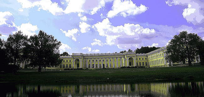 | ロシア短訪・総目次に戻る ・アレクサンダー宮殿 概要・歴史 外観・景観 居室・内装 調度 ◆サンクトペテルブルグ市 ![]() サンクトペテルブルグ市の紋章 ツァールスコエ・セロー(Tsarskoye Selo)地区には、ロマノフ王朝の様々な歴史的な建築物や構造物があります。その最大のものは、エカテリーナ宮殿ですが、それに加え、アレクサンドロフスキー宮殿があります。 ◆アレクサンダー宮殿 概要 Alexander Palace アレクサンダー宮殿(Alexander Palace)、正式には、アレクサンドロフスキー宮殿( Александровский дворец)は、サンクトペテルブルク近郊のツァールスコエ・セローにあり、帝政末期に皇帝ニコライ2世一家が皇宮として好んで使用していた宮殿で、現在でもほぼ往時に類する建築物が残っています。 ![]() ツァールスコエ・セロ-にあるアレクサンダー宮殿 tSource:Pinterest The world’s catalog of ideas ・歴史 アレクサンドル1世時代 アレクサンドロフスキー宮殿は、ツァールスコエ・セローにおけるロマノフ家の静養用の宮殿として建設されました。宮殿を造営したのはエカテリーナ2世で、皇孫に当たるアレクサンドル1世とその皇妃エリザヴェータ・アレクセーエヴナの結婚に際し、建設を依頼しています。 その典雅な新古典主義の殿堂は、ジャコモ・クァレンギによって設計され、1792年から1796年まで、4年の歳月をかけて造営されました。 ![]() (彫像付き)アレクサンダー宮殿(サンクトペテルブルクとレニングラード地域、 プーシキン、宮殿通り2、公園の景観の一部) Source:Wikimedia Commons Flying Russian - 投稿者自身による作品, CC 表示-継承 3.0, リンクによる 宮殿造営に当たっては、基礎工事の際に地下水脈にぶつかり、これを地階に作った半円形ホールに地下河川として残しました。アレクサンドル1世は、エカテリーナ2世、次いでパーヴェル1世の治世中、夏の宮殿として使用しましたが、即位後はエカテリーナ宮殿を使用しています。 歴代当主(歴代ロシア皇帝, インペラートル)