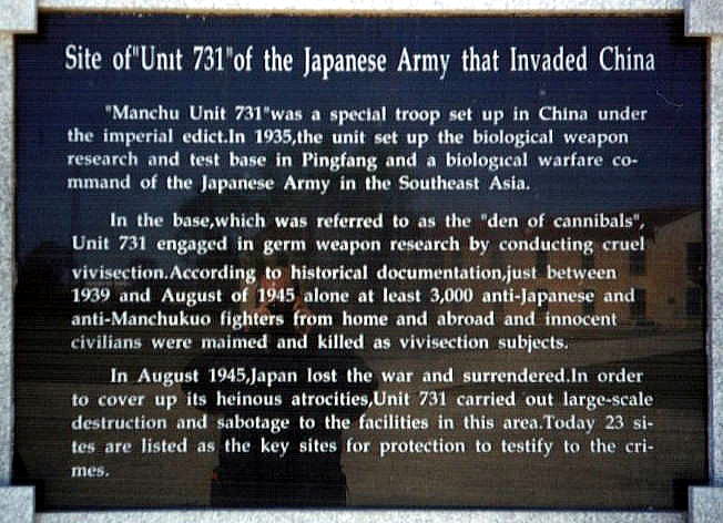 <従来の731部隊特集> ◆Unit 731: Japan discloses details of notorious chemical warfare division National archives lists members of army branch that conducted lethal experiments on Chinese civilians in 30s and 40s The Guardian,UK ◆「軍機」医学、歴史の闇に <731部隊軍医の博士論文> 京都新聞 ◆731部隊の簡単な歴史 著者:常石敬一神奈川大学教授 ◆731部隊 今までの記録 主な出典:Wikipedia 1) ・731部隊の概要 ・石井四郎 ・731部隊の沿革 ・防疫活動 ↓ 2)・生物兵器開発と実戦的使用 ・元部員尋問 ・金子順一論文 ↓ 3)・ペスト菌攻撃事例(寧波, 満州新京,常徳他) ・被害者の証言 ↓ 4)・人体実験 ・実験材料としてのマルタ ・細菌学的実験 ・生理学的実験 ↓ 5)・細菌爆弾の効果測定 ・性病実験と女性マルタ ↓ 6)・証拠隠滅とマルタの処理 ↓ 7)・戦後 ・朝鮮戦争における細菌戦 ↓ 8)・ハバロフスク裁判 ・日本国への賠償請求 ↓ 9)・旧陸軍軍医学校跡地で発見された人骨との関連 ◆最近の関連ニュース ※731部隊の元少年兵が激白…「残虐な人体実験が我々の日常だった」 2020年8月15日 現代ビジネス/ヤフーニュース ※731部隊の闇…日本社会がどうしても隠したい「残酷すぎる過去」 2020年2月27日 現代メディア ※旧日本軍「731部隊」の引き揚げ経路判明 政府作成の新資料見つかる 2020年2月9日 毎日新聞 ◆ 731部隊 組織と関与者(実名) 組織出典:ジャーナリスト近藤昭二氏 担当者名出典:731細菌戦部隊の恐るべき全貌 最新更新 2010年9月6日 担当者名出典::小俣和一郎氏 731部隊の推定組織 ↓ 731部隊に関与した医師・医学者 ↓ 731部隊関与者のその後 ◆ 731部隊関連写真資料 731部隊関連写真1 731部隊 黒竜江省哈爾賓の現場 ↓ 731部隊関連写真2 731部隊陳列館-1、731部隊陳列館-2 ↓ 731部隊関連写真3 731部隊関連の中国側資料 ◆ 731部隊遺跡陳列館へ行き方 731部隊陳列館への行き方 ↓ 731部隊陳列館の概要(中国政府設置Web) 自動日本語翻訳を選定してください! 以下は正式住所と正式名称 黒龍江省哈爾浜市平房区新疆大街21号 侵華日軍第七三一部隊罪証陳列館 Site of Former Japanese Gern Corpe.No.731 ◆ドキュメント731部隊:第二次世界大戦と大日本帝国の中国侵略 UNIT 731 Documentary Japanese Invasion of China Second Sino-Japanese War 1937-45 出典:Boston Republic Documentary Feb 25, 2015 1.プロローグ 1.<手術台の写真> ~ 7.<建物正面玄関> まで ↓ 2.■本編-1:731部隊建設に至る背景 8. <タイトル> ~ 18.<McGill氏>まで ↓ 3.■本編-2:石井四郎という人物と731部隊の施設建設まで 19.<石井四郎の横顔> ~ 31.<建物長官写真> まで ↓ 4.■本編-3:731部隊の実態~秘密裏に何が行われていたか 32.<監獄の床に座る囚人達> ~ 46.<マルタの配置図> ↓ 5.■本編-4:ハルビン郊外での野外実験による大量殺戮 47.<気球> ~ 57.<子供達の写真> ↓ 6.■本編-5:細菌爆弾の開発へ 58.<河川敷を歩く人> ~ 66.<弾頭の模式図> ↓ 7.■本編-6:アメリカを標的とした攻撃へ 67.<戦艦が爆撃する様子> ~ 8.<痩せた捕虜の写真> ↓ 8.■本編-7:連合軍捕虜の証言(終戦直前の様子) 9.<731舞台の建物> ~ 19.<瀋陽の戦争捕虜だった元米兵ロバートブラウン氏の証言> ↓ 9.■本編-8:終戦後もなおアメリカ本土を狙うための細菌爆弾の開発が行われていた 20.<建物前の連合軍捕虜> ~ 31.<オレゴン州BLYの地図> ↓ 10.■本編-9:第二次世界大戦の終結と731部隊の証拠隠滅 32.<原爆投下の写真> ~ 42.<死体を運ぶ写真> ↓ 11.■本編-10:戦後の米ソ冷戦下で日本を占領したアメリカが行ったこと 43.<日本兵が整列する写真> ~ 57.<日本が作成したデータ、グラフの写真,解剖図、手書きメモ> ↓ 12.■本編-11:戦犯免責のためのアメリカとの取引~悪魔との交渉 58.<石井四郎> ~ 79.<中国人女性とその後ろに日本兵> ↓ 13.■本編-12:石井四郎という人物と医者・科学者の責任 78.<石井四郎軍服姿> ~ 90.<会食の様子> ↓ 14.■本編-13:次第に明かされる731部隊の真実 91.<三種の写真>パネル ~ 102.<廃墟に子供が泣いている> ↓ 15.■エピローグ:日本は歴史を直視し大国としての責任を果たせるのか 103.<青い服の女性がマイクの前> ~ 最後まで 米国の731部隊のドキュメント(一本化:編集用) ◆NHKドキュメント 「731部隊の真実」~エリート医学者と人体実験~ 出典:NHKドキュメント「731部隊の真実」2017-8-13 1)・全体概要 ・731部隊概要 ・ハバロフスク裁判記録 ・軍医兵士の証言 ・人体実験概要 ↓ 2)・731部隊の概要 ・石井部隊概要 ・ハバロフスク裁判と証言 ・匪賊とはなど ↓ 3)・731部隊 元少年隊員 三角 武の証言 ・元少年隊員 須永 鬼久太証言 ・隊員医師名簿 ↓ 4)・京大戸田正三 ・戸田研究報告 ・東大総長 長與又郎 ・日本の大学医学部エリート呼び集め ↓ 5)・凍傷実験 ・吉村論文 ・第一課(チフス)課長田部井和 ・憲兵班 倉員証人証言 ・野外演習 ↓ 6)・野外実験 ・日中戦争勃発 ・染色体人体実験 ・三角武証言 ・細菌研究部長 川島清証言 ↓ 7)・ソ連満州侵攻 ・部隊撤退 ・証拠隠滅 ・ 三角証言(死体処理) ・米へのデータ提供と訴追逃れ ◆闇に消えた虐殺~731部隊・細菌戦の真実 出典:テレビ朝日 ザ・スクープ 1988年 ■1:プロローグ 細菌戦被害者による損害賠償裁判が明らかにした