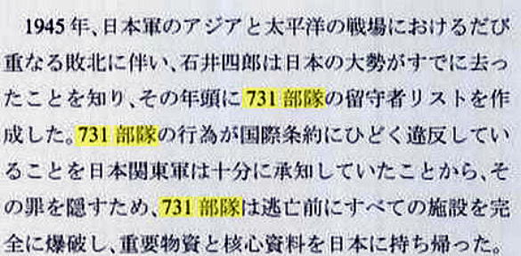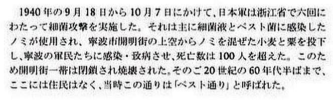 総合目次へ 731部隊関連写真1 731部隊 黒竜江省哈爾賓の現場 731部隊関連写真2 731部隊陳列館−1、731部隊陳列館−2 731部隊関連写真3 731部隊関連の中国側資料 ◆中国侵略日本軍第731部隊罪証陳列館完烈資料 ![]() 中国侵略日本軍第731部隊罪証陳列館 出典:軍民軍事 ![]() 中国侵略日本軍第731部隊罪証陳列館 出典:軍民軍事 以下は731部隊が飛行機でペスト菌を空から散布した対象地域の一つ寧波市のまちの地図。ザ・スクープの特集では、この町の住民が当時の状況をテレビカメラに向って説明していた。 ![]() 中国侵略日本軍第731部隊罪証陳列館 出典:軍民軍事 ![]() 中国侵略日本軍第731部隊罪証陳列館 出典:軍民軍事 ![]() これは現在の寧波市 出典:中国侵略日本軍第731部隊罪証陳列館 軍民軍事 ![]() 出典:中国侵略日本軍第731部隊罪証陳列館 軍民軍事 ![]() 中国侵略日本軍第731部隊罪証陳列館 出典:軍民軍事 ![]() 出典:軍民軍事 ![]() 中国侵略日本軍第731部隊罪証陳列館 出典:軍民軍事 ![]() ![]() ![]() 中国侵略日本軍第731部隊罪証陳列館 出典:軍民軍事 ![]() ![]() 中国侵略日本軍第731部隊罪証陳列館 出典:軍民軍事 ![]() 出典:中国侵略日本軍第731部隊罪証陳列館 軍民軍事 以下は731部隊の撤退時爆破された細菌実験センター(四方楼)の残骸 ![]() 出典:中国侵略日本軍第731部隊罪証陳列館 軍民軍事 下は731部隊の黒竜江省哈爾浜から日本各地への逃亡ルート略図。 ![]() 中国侵略日本軍第731部隊罪証陳列館 出典:軍民軍事 以下は実験動物(ネズミなど)の飼育施設。 ハタリス(ネズミの一種)飼育設備(内部)中国侵略日本軍第731部隊罪証陳列館 出典:軍民軍事 ![]() ハタリス(ネズミの一種)飼育室(外観) 出典:軍民軍事 出典:中国侵略日本軍第731部隊罪証陳列館 軍民軍事 ![]() 出典:中国侵略日本軍第731部隊罪証陳列館 軍民軍事 ![]() 小動物飼育室(外観) 出典:中国侵略日本軍第731部隊罪証陳列館 軍民軍事 ![]() 出典:中国侵略日本軍第731部隊罪証陳列館 軍民軍事 ![]() 昆虫班旧跡 出典:中国侵略日本軍第731部隊罪証陳列館 軍民軍事 下は城子溝野外実験場。 ![]() 出典:中国侵略日本軍第731部隊罪証陳列館 軍民軍事 ![]() 出典:中国侵略日本軍第731部隊罪証陳列館 軍民軍事 下は731部隊の安達野外実験訓練の後継。 ![]() 出典:中国侵略日本軍第731部隊罪証陳列館 軍民軍事 以下はマルタを使った被爆実験。 ![]() 出典:中国侵略日本軍第731部隊罪証陳列館 軍民軍事 以下はマルタを使った凍傷実験。 ![]() 實驗對象被凍24小時的手(資料照片)。 圖片來源?人民網 出典:中国侵略日本軍第731部隊罪証陳列館 ![]() 侵華日軍第七三一部隊舊址凍傷實驗室遺址。新華社記者 王凱攝 出典:中国侵略日本軍第731部隊罪証陳列館 出典:新華社 ![]() 10毫升紫色注射器。 出典:中国侵略日本軍第731部隊罪証陳列館 出典:中国軍網 ![]() 標本瓶。 出典:中国侵略日本軍第731部隊罪証陳列館 出典:中国軍網 ![]() China reveals new evidence of Japan's germ war atrocities Source:CGTN ![]() China reveals new evidence of Japan's germ war atrocities Source:CGTN Fin 総合目次へ |