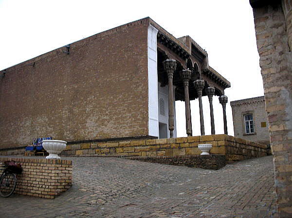 | 総合メニュー(中央アジア) アルク城に向かう 概要と歴史 アルク城博物館1 博物館2 博物館3 博物館4 博物館5 アルク城内には、王の関連するモスクや職務室、戴冠式、謁見の間や軍関係者、職人のワークショップ、陶磁器、アーセナル、宮廷人とその親族のための家、衣服、カーペット、食器、宮殿の宝物の保管スペースなどがあります。往事には約3,000人がアルク城(要塞)に住んでいと言います。 ◆アーク要塞への入口 アーク城には、城壁の一部がスロープとなっており、そこを上りキップ売場(受付)に行きます。下はアルク城(要塞)の入口を真横から撮影したものです。 ![]() アルク城(要塞)の入口 撮影:青山貞一 Nikon Coolpix S8 2015-2-25 下がアルク城(要塞)の正面入口です。 ![]() 撮影:青山貞一 Nikon Coolpix S8 2015-2-25 この先にアルク城入城切符売場があります。 切符売場では、入場券以外にカメラでの撮影、さらにビデオでの撮影などについてそれぞれ別途料金を支払います。これは東欧やバルト三国でよく経験したことです。三脚を使うかどうかによっても料金が異なります。せっかくなので、デジカメ、ビデオの料金まで支払いました。 下は上空から見たアルク城博物館の見取図です。 現在、アルク城として残っていて公開されているのは、下の見取り図に赤色で示したものだけです。 ![]() 上空から見たアルク城博物館の見取図 出典:グールマップ 入口で各種料金を払いアルク城の内部に入ります。 入口から城の内部に入る途中、上のアルク城博物館の見取図にある薄い暗いトンネルのような回廊を通ります。 アルク城の門の入口は、かつて多くの囚人が収容された監獄であり、入口を入ってすぐ左側に、当時の様子を人形で伝える展示物があります。ドイツやスコットランドなど欧州の城にも必ず監獄はあり、見学に行くと監獄や牢がひとつの見物となっていますが、アルク城の場合、入口近くに囚人が収容された監獄がありました。 下がその監獄です。 ![]() 撮影:青山貞一 Nikon Coolpix S8 2015-2-25 そこを抜けると下の写真のようになだらかなスロープがあります。 実はこのとき、下の写真にいる黒いジャンバーと黒いズボンの40歳代とおぼしき男性が、日本語で話しかけてきました。最初は無視していたのですが、親しげに話しかけてくるとの、英語の説明内容が非常に詳しいこともあり、アルク城の学芸員かと思いました。そこで、いろいろと質問しました。 下の写真の男性です。 ![]() 撮影:青山貞一 Nikon Coolpix S8 2015-2-25 ウズベキスタンではめずらしく流ちょうな英語を話すこの男性は、アルク城の専属学芸員と言って良いほどウズベキスタンの歴史文化、とりわけブハラの歴史や文化に詳しいのです。そのようなこともあり、彼に説明を受けながらアルク城内を散策していました。 下はトンネルを出て右折したところです。この先に、ジュマ・モスクがあります。 ![]() 撮影:青山貞一 Nikon Coolpix S8 2015-2-25 ![]() 撮影:青山貞一 Nikon Coolpix S8 2015-2-25 ここでブハラハーン国の概要について再度紹介しておきます。