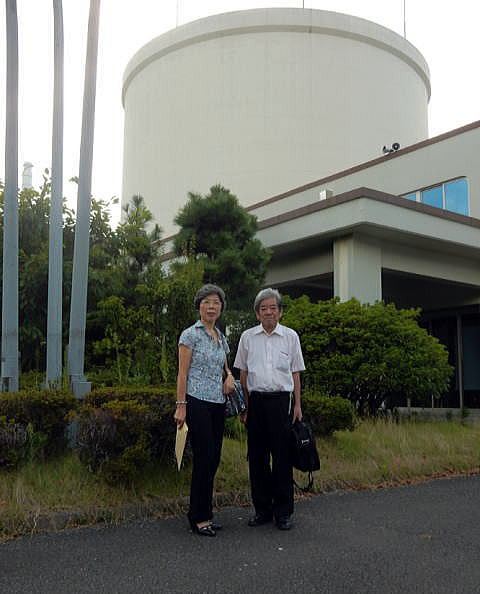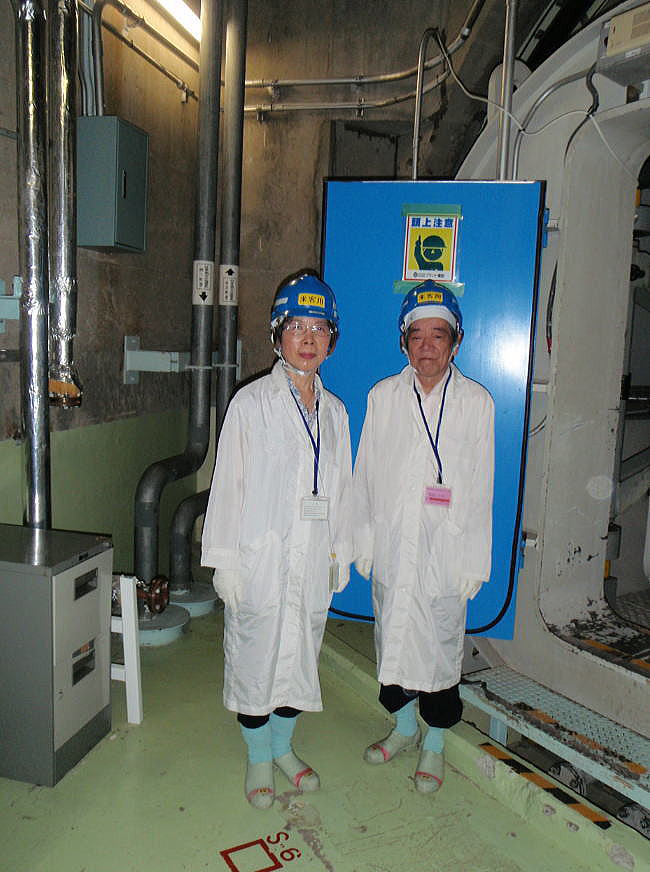 下の2枚の写真は廃炉段階にあるふげんの内部に入り説明を受けた後、外部に出てたところで説明者が撮影してくれたものである。