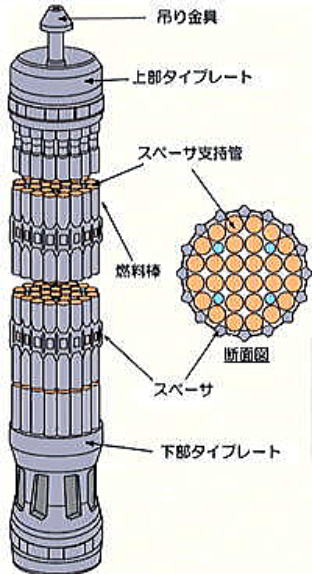 「新型転換炉は,使用済燃料を再処理して得られるプルトニウムを、天然ウランや回収ウラン(使用済燃料を再処理して得られるウラン)、劣化ウラン(濃縮工程で出てくる核分裂性ウランの濃度が天然より薄いウラン)に混ぜて使用できるとともに、濃縮ウランも使うことができます。このように、新型転換炉は燃料の多様化が図れることから、資源の少ない我が国にとって、エネルギーの安定供給を図る面で有利な原子炉と言えます。 |