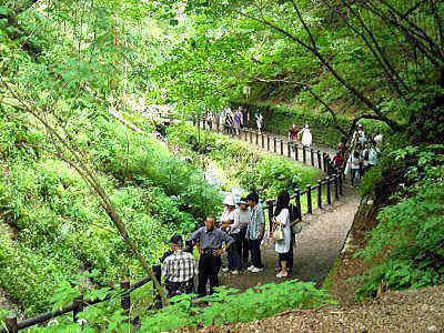 ◆立秋の上信越高原を行く 2008.8.7-8.9 8.12.-8.14 @野反湖に再び挑戦 A野反湖の自然景観 B野反湖の高山植物 Cバラギ湖の自然景観 Dバラギ湖の高山植物 E白根山に登る F弓池畔と湿原を歩く G浅間大滝を体感する H高原野菜を食べる I白糸の滝を体感する ◆関連ブログ 環境総研 北軽井沢研究室周辺の大自然(野反湖) 環境総研 北軽井沢研究室周辺の大自然(白根山) 環境総研 北軽井沢研究室周辺の歴史資源(草津町) 2008年の8月7日から9日は学部、8月12日から14日は大学院の学生を連れ、青山ゼミの北軽井沢合宿を行った。 ここでは、軽井沢町の「白糸の滝」を紹介したい。一部、昨年の同時期の写真が含まれている。 ○長野県軽井沢町の「白糸の滝」 ついでにと言ってはなんだが、2007年、2008年の青山ゼミの夏期合宿で学部の学生を連れて行った「白糸の滝」についても、お目に掛けよう! ![]() 行き方は乗用車の場合、旧軽井沢の三笠通りを北上すると簡単に「白糸の滝」に通じる有料道路(白糸ハイランドウェイ)に入る。バスの場合長野新幹線軽井沢駅から草軽交通バスの北軽井沢方面行きで約20分、「白糸の滝」下車。 国道146号線からはいる場合は、東京大学地震観測研究所ないし、峰の茶屋から入る。 ![]() グーグルマップより作成 ![]() ![]() 軽井沢町の案内図。白糸の滝は真ん中の最上部にある「現在地」 「白糸の滝」は長野県軽井沢町以外に、長野県長野原町、静岡県、山梨県、福島県、山形県、岐阜県、福岡県などに同じ名前の滝がある。 長野県軽井沢町の白糸の滝は、千曲川の支流のひとつであり、湯川の源流にある。上流に川が存在せず、浅間山の伏流水が岩盤の間から湧き出して滝となっている。そのため、雨の後でも水が濁らないのが大きな特徴だ。幅は以下の写真にあるように70mと広いが高さはわずか3mしかない。 ![]() 撮影:青山貞一、Nikon Cool Pix S10 ![]() 撮影:青山貞一、Nikon Cool Pix S10 下の写真はいずれも2007年か2008年8月に撮影しているが、紅葉の季節になると、一面真っ赤となり、まったくべつの趣となる。また、冬は一面、雪で真っ白となり、夏、秋とは違った景観が楽しめる! ![]() 白糸の滝の案内板(2008.8.7) 撮影:青山貞一、Nikon Cool Pix S10 ![]() 長野県軽井沢町白糸の滝(2007.8.7) 撮影:青山貞一、Nikon Cool Pix S10 ![]() ![]() 白糸の滝の案内板(2008.8.7) 撮影:青山貞一、Nikon Cool Pix S10 ![]() 白糸の滝(2008.8.7) 撮影:青山貞一、Nikon Cool Pix S10 ![]() 白糸の滝(2007.8)。 撮影:青山貞一、Nikon Cool Pix S10 ![]() 周辺はこんな感じ。白糸の滝(2007.8)。 撮影:青山貞一、Nikon Cool Pix S10 今年(2008年8月)は、中国や台湾など海外からの観光客で白糸の滝は大にぎわいだった。 ![]() 白糸の滝(2008.8.7) 撮影:青山貞一、Nikon Cool Pix S10 この白糸の滝も、青山ゼミ夏期合宿の定番となっている。以下は2007年8月の夏期合宿のひとこま。 ![]() 白糸の滝(2007.8)。東京工大大学院学生と池田こみち 撮影:青山貞一、Nikon Cool Pix S10 ![]() 白糸の滝を背に。池田こみち(2008.8) 撮影:青山貞一、Nikon Cool Pix S10 ![]() 白糸の滝(2007.8)。青山研究室ゼミの学生 撮影:青山貞一、Nikon Cool Pix S10 ![]() 白糸の滝(2008.8)。青山研究室ゼミの学生 撮影:青山貞一、Nikon Cool Pix S10 ![]() 白糸の滝(2007.8.7) 撮影:青山貞一、Nikon Cool Pix S10 ![]() 白糸の滝の下流域遊歩道になっている(2008.8.7) 撮影:青山貞一、Nikon Cool Pix S10 ![]() 白糸の滝の周辺(2008.8.7) 撮影:青山貞一、Nikon Cool Pix S10 下の写真は、白糸の滝から信濃川に流れる途中 ![]() 白糸の滝の周辺(2008.8.7) 撮影:青山貞一、Nikon Cool Pix S10 ここから浅間牧場まで片道2時間ちょっとのトレッキングコースがある! つづく |