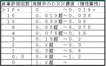 <当時の農作物ダイオキシン汚染の評価> 当時、焼却炉が集中立地する周辺地域のほうれん草などの農作物のダイオキシン濃度は、サンプル数は少ないものの、厚生省などが行っていた未汚染地域及び全国平均値に比べ著しく高いものであった。 1998〜1999年当時、健康面からダイオキシンを評価、判断する基準や指針は、世界保健機関(WHO)が勧告する耐容一日摂取量(TDI)や米国の実質安全量(VSD)、食物については表1に示す米国環境保護庁(EPA)の魚類摂取警報指針があった。それらの基準や指針をもとに所沢周辺地域の農作物を評価すると、背景摂取を含めるとWHOの耐容一日摂取量を超過する可能性があり、同時に魚介類に近い健康リスクをもたらす可能性があることが分かった。 欧米では毎日食べる新鮮野菜などにダイオキシン類が含まれることそのものが許容されないなかで、魚介中のダイオキシン(PCCC+PCDF)が含まれることが消費者ととって重要な問題となったと言える。これが問題の本質である。しかも、こと日本では、消費者の健康にとってもっとも大切な食品中のダイオキシン含有について、政府がまったくなんの対応をしてこなかった。これは現在に至りまで変わっていない。