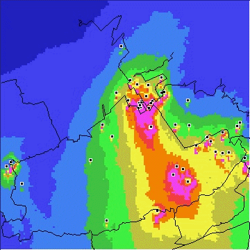 その後、これらの焼却施設が高濃度のダイオキシンを大気や土壌中に排出していることが分かってきた。 図2は、環境総合研究所が行った1998年当時の所沢周辺地域における大気中のダイオキシン濃度のシミュレーションの結果である。赤い色の部分が高濃度となっていることを示している。 国、埼玉県が看過してきた所沢周辺地域に集中する産業廃棄物や一般廃棄物がもたらすダイオキシン汚染に、私たちは民間の研究者として、また第三者的立場で正面から取り組んだ。本事件は、その過程でのテレビ報道をめぐり起きた裁判である。 当時の所沢周辺地域では、異常なまでの焼却炉の集中による著しいダイオキシン汚染が生じていた。本来、国、自治体が率先してその実態を調べ、国民、住民、農民、消費者に公表すべきであった。同時に、立法的措置をとり、施策、対策を立案し、高濃度のダイオキシン類や重金属類など廃棄物焼却による有害化学物質及びそのもととなる焼却を規制すべきであった。