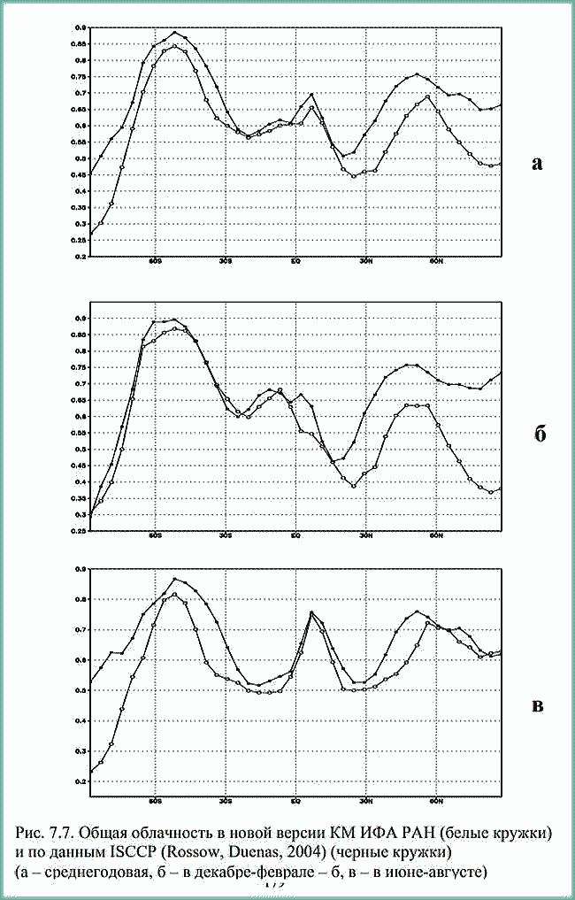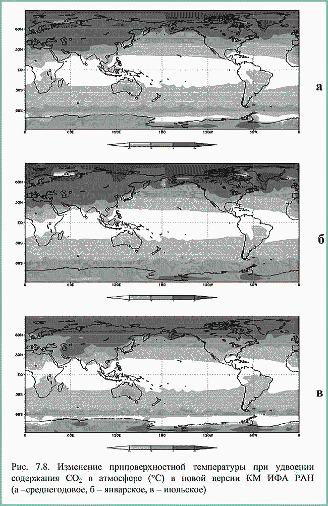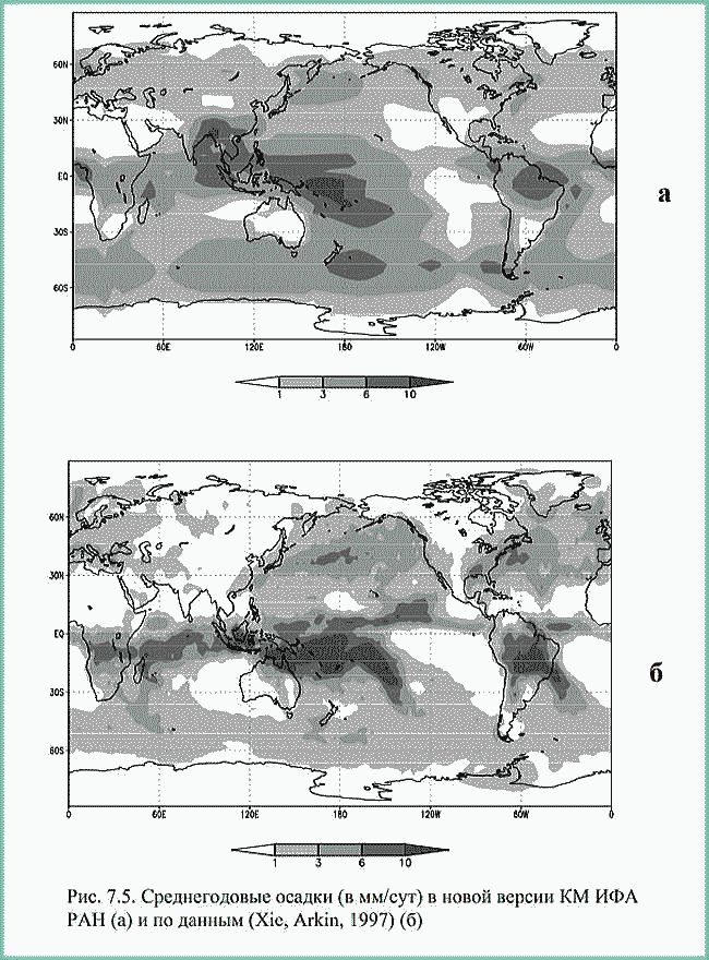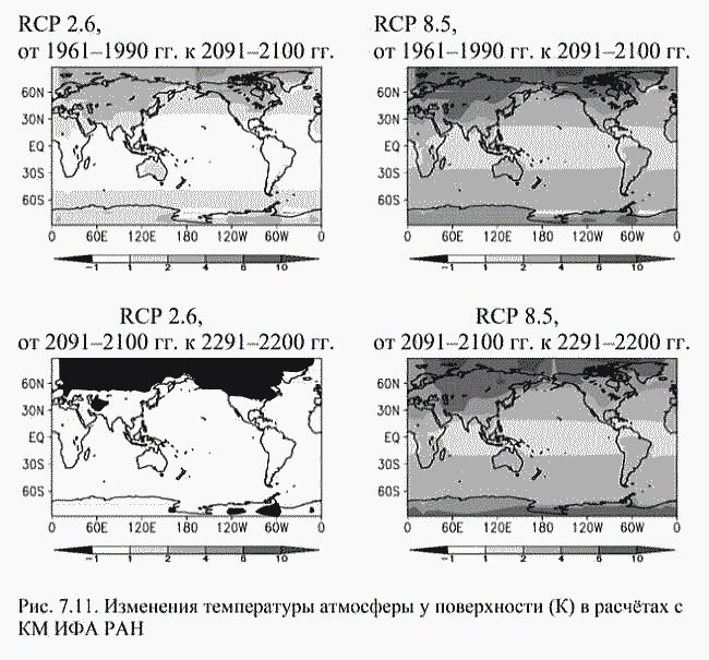 | ミランコヴィッチメニューへ戻る 一般大気循環理論 224p ロシア語 モホフ、A.V。エリセエフ、K.M.。 シャンタリンスキー https://core.ac.uk/download/pdf/197368962.pdf 第1章 第2章 第3章 第4章 第5章 第6章 第7章 参考 第7章 気候変動のシミュレーション 7.1 IAP RASCMを使用した気象および海洋プロセスのモデリング 7.2 IAP RASの気候モデルを使用して推定されたXX〜XXIII世紀の気候変動 7.1 IAP RASCMを使用した気象および海洋プロセスのモデリング 現在の体制のモデル計算による降水量の空間分布は、一般に観測データと一致しています(図7.5)。このモデルは、亜熱帯海洋の東部での低降水量と、モンスーンゾーンおよび両半球の中緯度ストームトラック領域での激しい降水量の主要な領域を再現します。熱帯の降水量の値は、強い対流の領域で13 mm /日に達します。 ストームトラックの領域では、北半球では2〜5 mm /日、南半球では4〜8 mm /日です。北半球の中緯度の大陸の上 0.5から3mm /日。大陸の砂漠地域(北アフリカ、南アメリカ、オーストラリア)、両半球の高緯度、および輸送の地域では、降水量の少ない地域(0.5 mm /日以下)が観測されています。 大陸から亜熱帯(アフリカ、オーストラリア、北西および南西アフリカ)の海への東風による乾燥気団。 IAP RAS CMの新しいバージョンでの計算によると、地球全体の平均年間降水量、は1097mm /年であり、測定データによると、963〜1130mm /年の範囲にあります。考慮されたモデルデータと観測データの違いは、他の最新モデルの特性値を超えません。図では7.6は、帯状および年平均での降水量の分布を示しています。図に示されています。 7.7 IAP RAS CMを使用した計算から得られた総雲量の帯状平均値を、1983年から2006年の期間の気候学に関する国際衛星プロジェクト雲量(IS CCP-D2)のデータと比較しました。このモデルは、赤道付近の最大値と亜寒帯の最大値、および両方の半球の亜熱帯の最小値をかなりよく再現しています。 モデルと衛星データの間のより良い一致は、冬よりも夏に見られます。 IS CCPデータによるグローバル総雲量の平均は、 model計算によると0.67です-0.6。北半球(南半球)の場合、IS CCPデータによるとの平均年間雲量は0.64(0.69)であり、モデル計算によるとは0.56(0.64)です。さまざまな地上および衛星測定のデータは、高緯度で互いに大幅に異なる可能性があることに注意してください(約0.3)。 ![]() 図: 7.5。 新しいバージョンのIAP RAS CM(a)および(Xie、Arkin、1997)(b)による平均年間降水量(mm /日) ![]() 図: 7.6。 新しいバージョンのIAPRAS CM(白丸)とデータ(Xie、Arkin、1997)(黒丸)での年平均によるゾーン平均平均年間降水量(mm /日) ![]() 図: 7.7。 IAP RAS CMの新しいバージョン(白丸)およびISCCPデータ(Rossow、Duenas、2004)によると(黒丸)(a-年平均、b- 12月から2月-b、c- 6月から8月) 大気中の CO2含有量の倍増に対するIAPRAS CMの平衡応答大気中のCO2濃度の倍増により、全球の地表付近の温度が年平均2.9K上昇しました。図から7.8は、大気中のCO2含有量が2倍になることによる表面温度の変化の年間、1月、7月の平均空間分布を示しています。熱帯地方では温暖化の特性値が最小であることがわかります(2 –3 K)および北半球と北極海盆の亜寒帯緯度で最大。 帯状平均では、高緯度での地表付近の温度の変化は、南極で2〜4 K、北極盆地で5〜10 K、北半球の亜極緯度で7〜9Kです。 モデルの作成者によると、北半球の高緯度での強い温暖化は、気温による正のアルベドフィードバックの影響と有意に関連しています。温暖化に伴い、積雪の境界は北に移動し、表面アルベドの減少を伴い、その結果、追加の温暖化を伴います。また、CO2濃度が2倍になることにも注目しました。大気、海洋全体の子午線熱伝達が弱まります。北半球の熱帯地方で最も顕著な変化が見られました。 結論として、IAP RASCMの新しいバージョンは全体として適切に再現していることに注意してください。気温、循環、水文レジームなど、世界および地域の平均的な気候特性 ![]() 図: 7.8。 新しいバージョンのIAPRAS CM (a-平均年間、b- 1月、c- 7月)の大気中のCO2含有量の2倍のによる地表付近の温度の変化(С) 7.2。 IAP RASの気候モデルを使用して推定されたXX〜XXIII世紀の気候変動大気物理学研究所のグローバル気候モデル(CM)を使用。午前Obukhov RAS(IAP RAS)(Mokhov et al。、2005; Eliseev et al。、2007; Eliseev、Mokhov、2011; Eliseev、 2011; Mokhov、Eliseev、2012)は、XX〜XXIII世紀における地球の気候システムの特性の変化を推定します。 ..。 RCPファミリーの最新のシナリオ(Representative Concentration Pathways; http://www.iiasa.ac.at/web-apps/tnt/RcpDb)に従って、人為的影響を考慮に入れます。 RCPシナリオは、CMIP3気候モデルの国際比較プロジェクトおよび気候変動に関する政府間パネル(IPCC)の第4評価レポートで使用されるSRES(排出量シナリオに関する特別報告書)ファミリーシナリオの後の新しい段階です(気候変動、2007年)。 IPCC第5評価レポートには、RCPシナリオを使用した最新の気候モデル(国際プロジェクトCMIP5- 結合モデル相互