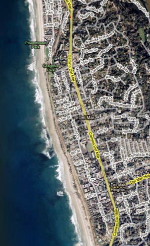 ① ② ③ ④ ⑤ ⑥ ⑦ 図4は先に紹介したカリフォルニア州沿岸計画のサンディエゴ地域ブロック図である。 沿岸管理計画ではサンディエゴの沿岸域を、①(原発や海兵隊基地があるペンデルトン)から⑫(メキシコ国境のインペリアルビーチ・ティファナ川渓谷)までを12の地区に分けている。今回の現地視察では、それらのほぼ全域を現地踏査したが、以下ではそのうち主な地域について現地で撮影した写真を元に報告している。 ![]() 図6 カリフォルニア州南部の「サンディエゴ沿岸地域」 本章の対象となるDel Mar地域は上図の5 出典:カリフォルニア沿岸計画 ![]() 図12 カリフォルニア沿岸管理計画の第5地域<Del Mar> 出典:カリフォルニア沿岸計画 図8は、図12の凡例である。上から農耕地、森林資源、開発地/市街地、汽水域/沿岸に近い河川、沿岸道路を示す。凡例では、さらに下の2つの大きな凡例で沿岸域の気候ゾーン、流域ゾーン、沿岸域そのもの、資源管理ゾーンを示している。 ![]() 図8 カリフォルニア沿岸計画における管理対象地図の凡例 出典:カリフォルニア沿岸計画(California Coastal Plan) ■サンディエゴ 第5地域(Del Mar) 図13は、グーグルマップにより Del Mar地域⑤の北部から中央部 をみたものである。 ![]() 図13 グーグルマップからみたDel Mar海岸 また図14はグーグルアースにより Del Mar地域⑤全体を3次元立体展開したものである。 ![]() 図14 グーグルアースで3次元展開したDel Mar海岸。すべて自然海浜 Del Mar地域は全地域が自然海浜であり、沿岸域への近接容易性も高く、実際パブリックビーチとして海水浴場などとして利用されている。Del Mar地域⑤の北部とTorrey Pinesとの境界に一部のラグーン(湿原や湿地)が自然のまま残されているが、周辺に住宅が迫ってきている。また海と接する汽水域、潮だまりではさまざまな生物の生息域やハビタットの価値を強化するための土地利用、資源保全が必要となる。 写真12はDel Mar地域の典型的な景観。海岸線に沿って走る道路の車寄せから容易に自然海浜に行ける。下の写真から⑥地域のLa Jolla半島が見えている。 ![]() 写真12 Del Mar 海岸にて。サンディエゴ市中心市街地近くの 良好な砂浜がある海水浴場 撮影:青山貞一 デジカメ Nikon CoolPix S10 逆光モードで撮影 2007.11.25 サンディエゴ市中心市街地近くの良好な砂浜がある海水浴場でもある。 ![]() 写真13 Del Marの自然海岸にて、筆者。 撮影:天田芳穂 デジカメ Nikon CoolPix S10 逆光モード 2007.11.25 現地調査当日は、曇天だったが、写真14のように市民が家族づれで楽しんでいた。ここにもカモメがだくさんいた。子供たちがエサをもってきてあげているからだろう。 ![]() 写真14 Del Mar 海岸にて。 サンディエゴ市中心市街地近くの良好な砂浜でもある 撮影:青山貞一 デジカメ Nikon CoolPix S10 逆光モードで撮影 2007.11.25 元々砂漠地帯だったサンディエゴでは、川、湖、湿地はなかなか見れないが。写真15は、Del MarからTorrey Pinesに向かう途中の湿地、湿原。 ![]() 写真15 Del Malに残る湿地、湿原 撮影:青山貞一 デジカメ Nikon CoolPix S10 ここでは、カリフォルニア沿岸計画の内容を筆者の現地視察及び資料調査から評価してみたい。 総じて、⑤Del Mar地域 を以下のリストとの関連で沿岸域の土地利用・資源管理、環境配慮の観点から評価すると、次のことが指摘できる。 Del Mar地域は自然海浜で残されており、しかも沿岸への接近容易性は高い。沿岸における野生生物生息域確保や湿地保全もなされているものの、それだけでは不十分であり、公的な土地取得により生態系の保存や生物生息地の保全が重要となっている。 カリフォルニア沿岸計画では、1000エーカーの土地を取得するなかで、生態系保存と地域公園とすることがうたわれている。具体的な土地の取得地としては、Snake Wall, Crest Canyon, Del Mar Bluffs, Anderson Triangle and Canyon, Torrey Pines Reserve Sxtension , Bald and Adjacent Propertiesが含まれる。 たとえば、Del Mar地域の湿地の生態系保全事業としては、San Dieguito Lagoon Wetland Restoration Project などがある。またDel Marにおける各種環境保全に活動する環境アドボカシー団体もある。 海岸線浸食については今回の調査だけでは分からなかった。この地域では、夏に各種スポーツ、イベントが行われている。州際道路5号線はDel Marでは山側を走っており、幹線道路による地域分断は少ない(以下の図15 参照)。 ![]() 図15 海岸線と州際道路5号線(右端、ジャンクションがある)