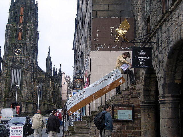 | スコットランド総目次へ * スコットランド基礎知識 なぜ、スコットランドか 東京からエディンバラへ リンリスゴー到着 エディンバラ予備視察 ロイヤル・マイル1 ロイヤル・マイル2 ロイヤル・マイル3 再独立に燃える議会 スコットランド議会1 スコットランド議会2 以下はロイヤルマイル1の続きです。 ◆ローンマーケット(Lawnmarket) ![]() Gladstone's Land, Lawnmarket Source:Wikimedia Commons By Nicholas Mutton, CC BY-SA 2.0, Link ローンマーケット(Lawnmarket)はもともと、ハイストリート番号の続きであるストリートナンバリングを考慮する別個の命名の前に呼ばれた通り(ハイストリート)の一部です。 1477年のチャーターは、ハイストリートのこの部分を、「内陸の商品」と呼ばれる糸、ストッキング、粗い布などの物品の市場場所と指定していました。その後、リネンが主な製品として販売されるようになりました。その結果、ここはランド・マーケット(田園市場)として知られるようになりましたが、後に、それが鈍ってローン・マーケット(芝生市場、Lawnmarket)となりました。 下はローン・マーケット(芝生市場、Lawnmarket)の写真。 ![]() This photo of The World's End is courtesy of TripAdvisor ![]() This photo of The World's End is courtesy of TripAdvisor 今日、通りに面する店の大半は、観光客を対象としています。北側にはスコットランドのナショナルトラストが所有する17世紀の商人のタウンハウス(Gladstone's Land)があります。南側には、17世紀の切妻壁(gables)があります。これは、オランダの影響を強く受けています。 |