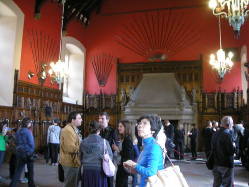 以下はエディンバラ城の平面図です。 ![]() エディンバラ城の主要施設配置図 A:遊歩道 B:門塔 C:入場券売場 D:落とし格子門と菱形模様の門 E:菱形砲台 F:ミルズマウント砲台と大砲(ワンオクロック砲) G:カートを入れる小屋 H:西側防衛 I:病院 J:丸太砲台 K:スコットランド国立戦争博物館 L:総督(知事)官邸 M:新兵舎 N:軍事刑務所 O:ロイヤル・スコッツ博物館(スコットランド皇室博物館) P:フージの門(要塞への主要な入口) Q:貯水池 R:モンス・メグ(中世の 射石砲) S:動物墓地 T:セント・マーガレット礼拝堂(教会堂) U:半月型砲台 V:王冠広場 W:宮殿 X:グレートホール Y:アン王女棟 Z:スコットランド国立戦争記念館 Plan of Edinburgh Castle Key: A Esplanade ・ B Gatehouse ・ C Ticket office ・ D Portcullis Gate & Argyle Tower ・ E Argyle Battery ・ F Mills Mount Battery & One o'Clock Gun ・ G Cartsheds ・ H Western Defences ・ I Hospital ・ J Butts Battery ・ K Scottish National War Museum ・ L Governors House ・ M New Barracks ・ N Military Prison ・ O Royal Scots Museum ・ P Foog's Gate ・ Q Reservoirs ・ R Mons Meg ・ S Pet Cemetery ・ T St. Margaret's Chapel ・ U Half Moon Battery ・ V Crown Square ・ W Royal Palace ・ X Great Hall ・ Y Queen Anne Building ・ Z Scottish National War Memorial source:Wikimedia Commons CC 表示-継承 3.0, リンクによる 主要施設 デイヴィッズ・タワー デイヴィッズ・タワーは、1376年にデイヴィッド2世により建設が委任された。当時の主流の建築であり、城の主要な入り口でしたが、のち塔が宿泊する客人や貴族のため拡張され、原型の入り口はゲスト・ハウスに塗り込められました。 カトリックを信仰した女王メアリー1世は1567年にプロテスタントのジェームズ・ヘップバーンと結婚し、これに反対する貴族たちの大規模な反乱を引き起こしました。 反乱軍側に投降したメアリーはロッホ・リーヴン城へ監禁されました。メアリーに忠誠を尽くす一部の貴族の助けを借り、彼女は城から逃亡しイングランドへ亡命しました。 エディンバラ城守護だったウィリアム・カークルディーは一年余り城に立てこもこりました。幼王ジェームズ6世(のちのイングランド王ジェームズ1世)の摂政モートン伯ジェイムズ・ダグラスは、エリザベス1世より支援を受け、砲撃と銃撃でデイヴィッズ・タワーを崩壊させました。 城の陥落後、ウィリアム・カークルディーは絞首刑にされ、ハーフ・ムーン・バッテリーを含む多くが再建されました。 半月型砲台広場 ハーフ・ムーン・バッテリー ![]() 半月型砲台広場 ハーフ・ムーン・バッテリー Half Moon Batery source:Wikimedia Commons CC BY-SA 3.0, Link ![]() 撮影:青山貞一 Nikon Coolpix S8 ハーフ・ムーン・バッテリーは、古いデイヴィッズ・タワーの後に建設された砲台です。この壮大な防衛の設備は今日も城の東側を占めています。かつてディヴィッズ・タワーの客室であった部分は、冬の間だけ軍事用ハトの小屋にされたりしていました。 クラウン・スクエア ![]() クラウン・スクエア source:Wikimedia Commons CC BY-SA 2.0 de, Link ![]() クラウン・スクエア 撮影:青山貞一 Nikon Coolpix S8 クラウン・スクエアは城の頂上の砦である。スクエアの北側に国立戦争記念館、東側にロイヤル・パレス、南側にグレート・ホール、西側にクイーン・アン棟があります。 キングズ・ロッジング 15世紀から、かつて王族の居室のあった部分です。メアリー1世が嫡子ジェームズ6世を生んだ産室、またはメアリー・ルームも含みます。 グレート・ホール ![]() グレート・ホール Source:Wikimedia Commons By Mike Pennington, CC BY-SA 2.0, Link ![]() グレート・ホール 撮影:青山貞一 Nikon Coolpix S8 グレート・ホールは1511年、ジェームズ4世の命令で建てられた。スコットランド議会の会議場として使われましたた。現在時折儀礼的行事に用いられています。 クラウン・ルーム スコットランド王家の宝冠や宝石類が展示されています。宝冠は1540年に作られ、スコットランド産の金、94個の真珠、10個のダイアモンド、33個の貴石と半貴石でできています。 スコットランド王が代々戴冠してきた運命の石と呼ばれる『スクーンの石』も展示されています。この石は長くウェストミンスター寺院で保管され、イングランド、イギリスの代々の王が戴冠に用いてきましたが、1996年にスコットランドへ返還されています。 聖マーガレット教会堂 ![]() 聖マーガレット教会堂 Source:Wikimedia Commons CC BY-SA 3.0, Link ![]() 聖マーガレット教会堂 撮影:青山貞一 Nikon Coolpix S8 ![]() 聖マーガレット教会堂 撮影:青山貞一 Nikon Coolpix S8 聖マーガレット教会堂は、エディンバラ、また城内の中で最も古い建物です。12世紀に建設が始められた。デイヴィッド1世が、1093年にエディンバラ城で亡くなった母マーガレットに捧げ、王家の私用礼拝堂として建てられました。 ロバート1世は、バノックバーンの戦いに敗れイングランド軍に捕らえられるのを避けるため、配下の司令官初代マリ伯に命じて城を破壊させました。しかし彼は行いを悔い教会堂の改修を依頼した。最大25人程度しか入らない教会堂ですが、結婚式や洗礼式と