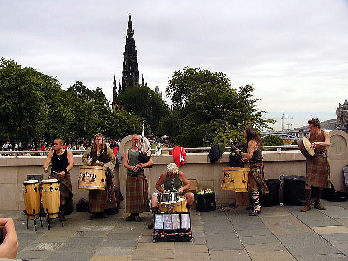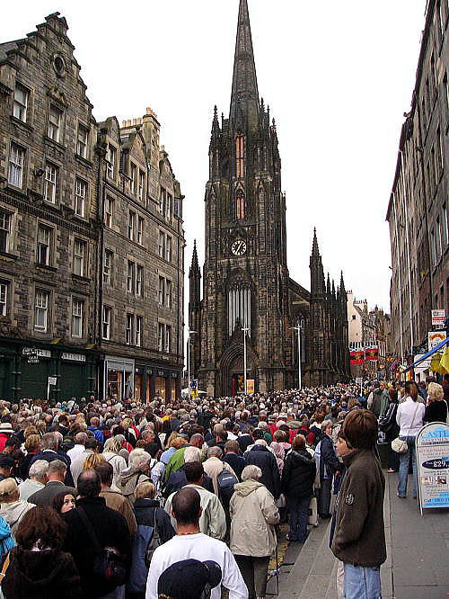 | スコットランド総目次へ* エディンバラ旧市街 エディンバラ旧市街ギャラリー クイーンズ・ホール エディンバラフェスタ ロイアル・ミリタリー・タトゥー ◆エディンバラ・フェスティバルの概要 エディンバラ・フェスティバル(Edinburgh Festival)は、スコットランドの首都エディンバラで毎年8月の同時期に開催される複数の芸術と文化の祭典の総称です。 ![]() エディンバラ城の構内では、連夜、軍楽隊によるバグパイプ演奏やハイランドダンスが披露されるミリタリー・タトゥーが上演され、市内の各所で数多くの大道芸人がパフォーマンスを繰り広げます。 Source:Wikimedia Commons CC BY-SA 2.0 de, Link ◆歴史 エディンバラ・フェスティバルの始まりは1947年、第二次世界大戦の記憶がまだ薄れない中、「人間精神の開花のための基礎を提供する」という理念を掲げて、エディンバラ国際フェスティバル(EIF)が創始されました。 そして同じ年、8つの劇団がフェスティバルの公式の支援を受けずに「もぐり」で自主公演を行い、これが後のエディンバラ・フェスティバル・フリンジ(EFF)へと発展することになります。このEFFは、エディンバラ・フリンジ(Edinburgh Fringe)、あるいはただフリンジとも呼ばれていますが、誤ってエディンバラ・フリンジ・フェスティバルと呼ばれることもあります。 エディンバラ国際フェスティバルとフリンジはそれぞれ独立した組織で、毎年それぞれ別個の催しを行う。1947年以来、エディンバラで他にいくつかのフェスティバルが創始されて、そのほとんどが毎年8月の同じ期間に開催されています。 したがって、エディンバラ・フェスティバルというのは、一つのフェスティバルを指すのではなく、エディンバラという同じ都市で同時期に開催されるいくつかのそれぞれ独立したフェスティバル全体を指す呼称です。 ◆エディンバラ夏期フェスティバルのリスト ![]() オールドタウンのロイヤル・マイルで、ミリタリー・タトゥー 入場券を求めて行列する人々 Source:Wikimedia Commons CC BY-SA 2.0 de, Link 以下は、エディンバラで夏期に行われるフェスティバルを創設の年代順にあげたものです。なお、*印は、そのフェスティバルが、各々のフェスティバルを統括する公的組織であるフェスティバルズ・エディンバラの傘下にあることを示します。 エディンバラ国際フェスティバル(1947年)* - 本来の「公式な」フェスティバルで、古典・現代の演劇、オペラ、クラシック音楽やバレーを主催。 エディンバラ・フェスティバル・フリンジ(1947年) - 国際フェスティバルに対して、小規模な、文字通りフリンジ(fringe: 周辺的なもの)として出発しましたが、今や世界のあらゆるフェスティバルの中でもっとも大規模な芸術祭として知られる。演劇、コメディー、音楽、ミュージカル、舞踊、子どものためのショーなど。 エディンバラ国際映画祭(1947年)* エディンバラ・ミリタリー・タトゥー(1950年)* ![]() エディンバラ・ミリタリー・タトゥー(2011年)* Source:Wikimedia Commos By Photo: LA(Phot) Sally Stimson/MOD, OGL v1.0, Link ![]() 2016年のエディンバラ・ミリタリー・タトゥーの会場風景 Source:Wikimedia Commons CC BY-SA 4.0, Link ![]() フリンジにおけるロイヤル・マイルでの大道芸 Source:Wikimedia Commons CC BY-SA 3.0, Link エディンバラ・ジャズ・ブルース・フェスティバル(1978年)* エディンバラ国際ブックフェスティバル(1983年)* エディンバラ・メーラー(1995年) - アジア系(インド、パキスタン、バングラデシュなど)の人々による祭り。メーラー(mela)はヒンズー語で「人々の集まり、祭り」の意。 エディンバラ国際インターネット・フェスティバル(1999年) エディンバラ・ピープルズ・フェスティバル(2002年) - ただし、1951年 - 1954年に同名のフェスティバルが開催されている。 エディンバラ・インターアクティブ・エンターテインメント・フェスティバル(2003年) エディンバラ・アート・フェスティバル(2003年)* エディンバラ・アヌアーレ(2004年) - 現代美術の催し。アヌアーレ(annuale)はイタリア語で「毎年の」の意。 フェスティバル・オブ・ポリティクス(2005年) - スコットランド議会の主催。 フェスティバル・オブ・スピリチャリティ・アンド・ピース(2005年) アイフェスト(iFest)(2007年) - インターネットに関するフェスティバルと会議。 エディンバラ・スウィング・フェスティバル 次のフェスティバルは8月にエディンバラで開催されるものの、基本的に業界の集まりで、一般向けに何か行事を公開するものではありません。 エディンバラ国際テレビジョン・フェスティバル(1976年) ◆年間を通じて開催されるフェスティバル ケイリー・フェスティバル - ケイリー(Ceilidh)はゲール語で「物語と歌と踊りの夕べ」のことで、毎年3月と4月に開催されます。 エディンバラ国際ハープ・フェスティバル - 毎年3月または4月に開催。 エディンバラ国際サイエンス・フェスティバル - 毎年4月開催。 ワン・エイティー - 「サイエンス・フェスティバル」のフリンジ版(2006年創始)。 エディンバラ・