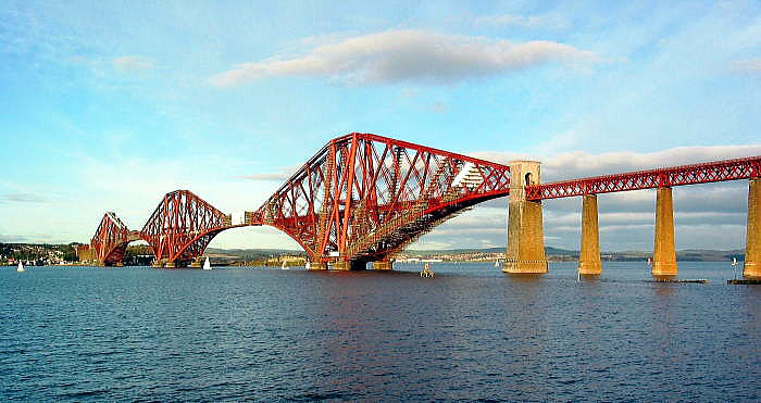 | スコットランド総目次へ* フランスに嫁いだメアリー1 フランスに嫁いだメアリー2 リース港 フォース鉄道橋1 フォース鉄道橋2 ◆フォース鉄道橋 下はグーグルマップで見たフォース鉄橋橋の位置です。 ![]() 出典:グーグルマップ フォース鉄道橋は、エディンバラ市の北のフォース湾にかかる大鉄橋で世界遺産となっていますす。 出典:グーグルマップ ![]() 撮影:青山貞一 Nikon Coolpix S8 2018-7 ![]() 出典:グーグルマップストリートビュー ![]() サウス・クイーンフェリーから臨むフォース鉄道橋 Forth Rail Bridge from South Queensferry Source: Wikimedia Commons By Andrew Bell, CC BY-SA 3.0, Link フォース橋(Forth Bridge)は、スコットランドのエディンバラ近郊のフォース湾に架かる鉄道橋です。全長2530mのカンチレバートラス橋で1890年に完成しました。 19世紀、「テイ橋の悲劇」をはじめとして強風による落橋事故が相次いだため非常に強固な橋として設計されました。私たちが現地に行った後の2015年に世界遺産リストに登録されています。 1964年には隣に道路橋のフォース道路橋が開通しました。鉄道橋のフォース橋は鉄道橋を強調したフォース鉄道橋(フォースてつどうきょう)の名称でも呼ばれています。 ・国 スコットランドギリスの旗 イギリス ・所在地 エディンバラ ・交差物件 フォース湾 ・用途 鉄道橋 ・管理者 ネットワーク・レール ・設計者 ジョン・ファウラー ・ベンジャミン・ベイカー ・着工 1882年 ・竣工 1890年 ・開通 1890年3月4日 構造諸元 ・形式 カンチレバートラス橋 ・材料 鋼鉄 ・全長 2528.7 m ・高さ 104 m ・桁下高 46 m ・最大支間長 521.3 m 「フォース鉄道橋2」につづきます スコットランド総目次へ* |