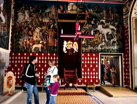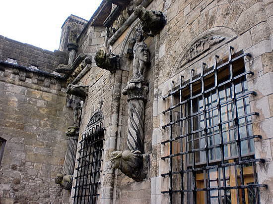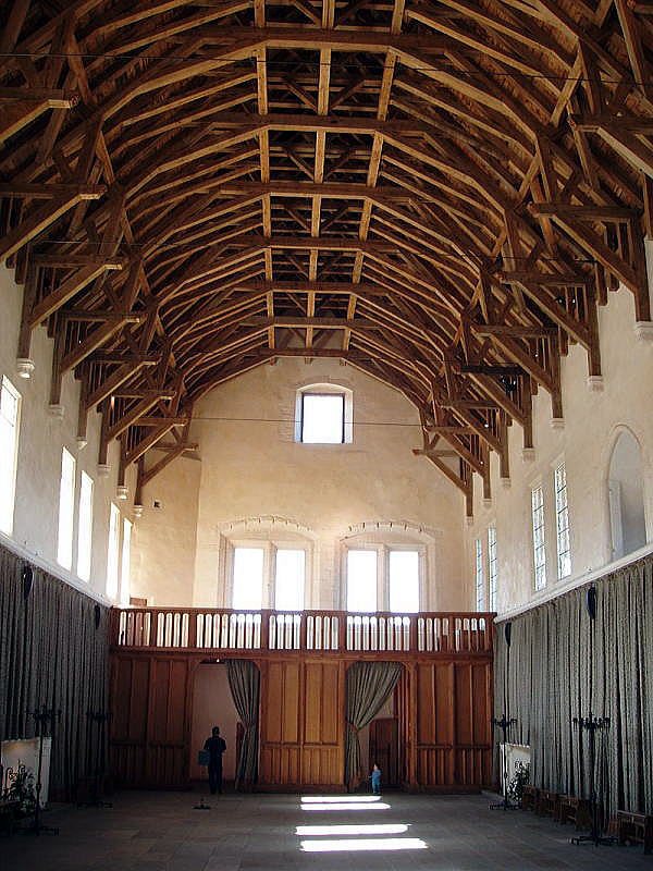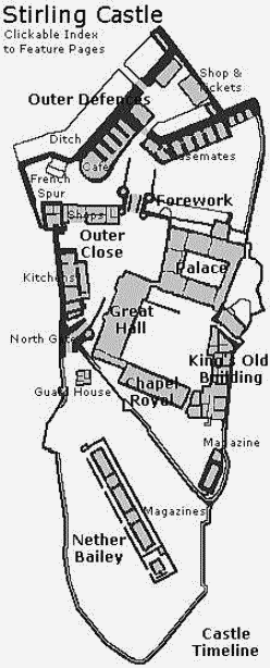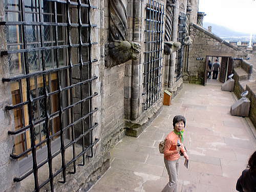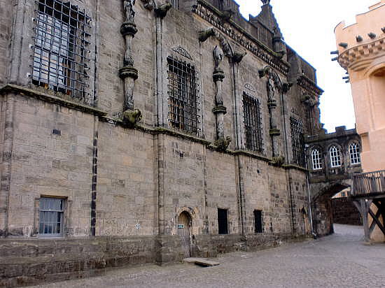 | スコットランド総目次へ* スターリング城の歴史1 スターリング城の歴史2 スターリング城の歴史3 スターリング城の内部1 スターリング城の内部2 スターリング城の内部3 ![]() Source: UNDISCOVERED SCOTLAND ![]() 撮影:池田こみち Nikon Coolpix S10 ・王の旧建物 内側囲い(Inner Close)の最も古い部分は、1497年頃に完成した西側の King's Old Building(王の旧建物)です。ジェームス4世の新しい居住範囲と して使用されはじめ、元々はL字型の建物でした。 主要な部屋は地下室の上の1階にあり、二つの部屋には西側が広く眺望できる大きな窓がありましたが、内装は大きく改変されていました。 突き出た階段塔は、上部が八角形となっており、同じ建物の第二階段塔をを模したデザインでした。 1855年、建物の北端が焼失し、建築家で歴史家のロバート・ウィリアム・ビリングスによって貴族様式(Baronial Style)に再建されました。居室空間の南西端には、以前台所として使用されていた繋ぎの建物があり、王の旧建物や隣接する王宮とは異なる配置となっていました。 これはジェームス1世の治世から始まっており、より早い15世紀の構造であることが示唆されています。 1998年のこの建物内の発掘調査では、埋葬のあとが発見されており、これが教会や礼拝堂の場所であったかもしれないことを示唆しています。 ・大ホール Great Hall ![]() スコットランド、スターリング城大ホール内部(北向)の写真 Source:Wikimedia Commons By Rab-k at English Wikipedia, CC BY 2.5, Link ![]() This photo of Stirling Castle is courtesy of TripAdvisor ![]() This photo of Stirling Castle is courtesy of TripAdvisor ![]() This photo of Stirling Castle is courtesy of TripAdvisor インナークローズ(Inner Close)の東側には大ホール(Great Hall)、または議会ホール(Parliament Hall)があります。これは、1497年に王の古い建物が完成したのに続いて、ジェームス4世によって造られ、1503年までに漆喰が塗られました。 そこには、伝統的な中世様式の中に、飾り窓のトレーサリー(ゴシック式窓上方の装飾的骨組み)といったような繊細なルネッサンス模様が取り込まれていました。 多くのスコットランドの職人が手がけ、1470年代後半に建設されたエルサム宮殿のエドワード四世のホールに匹敵するスコットランドのデザインアイデアを取り入れています。これには、従来の中世の計画の中で、窓に交差する文房具のようなルネッサンスの詳細が含まれます。 室内には5つの暖炉があり、壁の側面の大きな窓からは光が差し込み、王の高座の端を照らしています。部屋の広さは42×14.25メートル、スコットランドで最大のホールになります。 元々のハンマービーム屋根(柱のない広い空間を作るための英国ゴシック建築の木造トラス)は、1800年に取り除かれました。その際、装飾的な銃眼付き胸壁も合わせて取り外され、このホールは狭い部屋に区分され兵舎として利用されました。 二面の床と5つの交差する壁が差し込まれ、窓も取り替えられました。早くも1893年には、大ホール修復のための呼びかけが行われましたが、修復の機会は、1965年に軍隊が退去するまでありませんでした。 その後、歴史的に正統な修復を行うため、1999年に作業が始まりました。ハンマービーム屋根とパラペットが取り替えられ、窓が再開され、外壁が石灰洗浄されています。 ◆王宮内部 Royal Palace 門の左側にあり、インナークローズの南側を形成しているのが王宮です。ブリテン島の最初のルネッサンスの宮殿です。これはジェームズ五世の作品です。ルネサンス建築と豊かな後期ゴシック様式を兼ね備えたこの建物は、スコットランドで最も建築的に印象的な建物の一つです。 ![]() スターリング城宮殿(1539~42年) Source:Wikimedia Commons CC BY-SA 3.0, Link ![]() Stirling Castle Source:Wikimedia Commons Tom Pennington, CC 表示-継承 2.0, リンクによる 以下は王宮の周辺です。 ![]() スターリング宮殿の側面の拡大 撮影:青山貞一 Casio EXELIM ![]() スターリング宮殿の側面の拡大 撮影:青山貞一 Casio EXELIM ![]() スターリング宮殿の側面の拡大 撮影:青山貞一 Casio EXELIM ![]() スターリング宮殿の側面の拡大 撮影:青山貞一 Casio EXELIM 建築は1530年代に始まり、1540年代後半までにはおおかた完成しました。この作業の責任者は1540年に処刑されるまで、フィナートのジェームス・ハミルトン卿でした。(建築家である)彼も、王様から受けた土地と恩に報いるため、建築費の一部を負担しました。さらに、建築工事は、マリー・ド・ギースの摂政時代に行われ、18世紀には上層階は城の管理者の住居に改装されることとなりました。 王からの土地と恩恵のため、メアリーの摂政ギース(メアリーの母親)とジェームス・ハミルトン卿により更なる作業が行われました。さらに18世紀には上層階が城のガバナーのためにアパートに改築されました。 建築はフランス風のものですが(ギースはフランスから嫁いでいます)、装飾はドイツ風という印象です。彫刻の原点はドイツの彫刻家ハンス・ブルクマイヤーの作品にあります。 ![]() 撮影:青山貞一 Nikon Coolpix S
