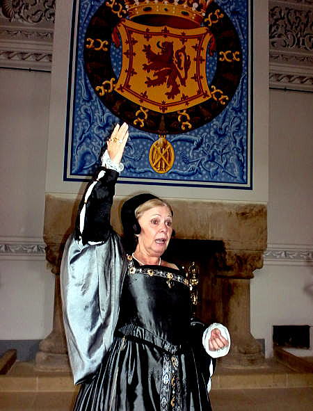 | スコットランド総目次へ* スターリング城の歴史1 スターリング城の歴史2 スターリング城の歴史3 スターリング城の内部1 スターリング城の内部2 スターリング城の内部3 ![]() Source: UNDISCOVERED SCOTLAND ![]() 撮影:青山貞一 Nikon Coolpix S8 ![]() This photo of Stirling Castle is courtesy of TripAdvisor ![]() This photo of Stirling Castle is courtesy of TripAdvisor ![]() This photo of Stirling Castle is courtesy of TripAdvisor ![]() This photo of Stirling Castle is courtesy of TripAdvisor 彫像には、南側のパラペットにある兵士の列と、主要な階の周りに実物大の人物が含まれています(以下の写真参照)。これには、ジェームス五世、悪魔、セント・マイケルの肖像画、金星といくつかの惑星神の表象が含まれています。 ![]() スターリング城の壁面の彫刻、(スコットランド、スターリング) Source:Wikimedia Commons Postdlf, CC 表示-継承 3.0, リンクによる ![]() This photo of Stirling Castle is courtesy of TripAdvisor 宮殿に向いて設置された北側、東側そして南側のこれらの彫刻は、天の住処(天国)との関連で解説されてきました。19世紀の建築史家R. W.ビリングスは、その像を「想像力の豊かさ、しかし反乱的なもの」と表現しています。西側の入り口(ファサード)は装飾されておらず、不完全であり、スコットランドの枢密院は1625年にその建物が「岩の上の鞘」(スコットランドのゲール語)を巡っての奨励」であったと指摘しています。 宮殿は2つのアパートで構成されています。ひとつは王と女王のためのものです。それぞれにはホール、居間、ベッドルームがあり、クローゼットとしてさまざまな小さな部屋があります。 ルネッサンス装飾は、刻まれた石の暖炉を除き、建物の軍事的使用からほとんど現存していません。キング・オブ・プレゼンス・チェンバーの天井は、もともとスコットランドのルネサンスの木彫りの現代的な例で、スターリング・ヘッドとして知られている一連の彫刻されたオーク材の肖像画で装飾されています。 天井の彫刻は1777年に天井が崩壊したときに彫刻も取り外され、もともと56の頭部がありましたが、38になってしまいました。ほとんどがスターリングのスミス研究所に与えられ、現在は城に保存されており、さらに3つはエジンバラのスコットランド国立博物館にあります。 ![]() .ヘンリー8世 Source:Wikimedia Commons By Stefan Schäfer, Lich - Own work, CC BY-SA 3.0, https://commons.wikimedia.org/w/index.php?curid=19484036 ![]() マリー・ド・ギース(メアリー王女の母) Source:Wikimedia Commons By Stefan Schäfer, Lich - Own work, CC BY-SA 3.0, https://commons.wikimedia.org/w/index.php?curid=19484038 ![]() オリジナルのスターリング・ヘッド、ジェームス5世 Source:Wikimedia Commons CC BY-SA 3.0, Link 肖像画のいくつかは王、女王、または 廷臣たちに間違いないと考えられており、他は古典や聖書に登場する人物を描いたものと考えられています。外装彫刻と同様に、ドイツの資料との類似点、特にポーランドのヴァヴェルの天井が注目されています。 2011年6月5日と6日の週末に再び公開された王宮の壮大さを再現する1200万ポンドのプロジェクトにより、研究と職人技の10年を費やした作品の中には、スコットランドの メアリー・スチュアート女王の幼少時の家にあった1540年代の7つの手織りの修復されたタペストリーがあり、そのうちの4つは2013年に修復が完成し、作品について修復が完了しています。 壮大な宮殿の復旧は、1200万ポンドの事業となり、2011年6月5日~6日の週末に公開されることとなりました。 ・王室の礼拝堂 ![]() 王室礼拝堂 Source:Wikimedia Commons By Bill Harrison, CC BY-SA 2.0, Link 1501年にジェームズ4世によって設立された礼拝堂は、王の旧館と大ホールの間にあり、現在の建物より南にありました。これは1543年に女王メアリーが戴冠された礼拝堂です。 以下はメアリー・スチュアートが戴冠式で使った椅子です。 ![]() 撮影:青山貞一 Nikon Coolpix S8 ![]() This photo of Stirling Castle is courtesy of TripAdvisor ![]() 撮影:青山貞一 Nikon Coolpix S8 ![]() This photo of Stirling Castle is courtesy of TripAdvisor しかし、ジェームス6世の最初の息子、ヘンリー皇太子が1594年に生まれたとき、礼拝堂を王立礼拝の適切な会場として再建することに決めました。 新しい建物は、ホールへのアクセスを改善するために、古い場所の北側に1年以内に建てられました。ジョン・コルビルが「ソロモンの偉大な寺院」と呼んでいた礼拝堂が時間通りに仕上げられるかどうかは疑いがありませんでした。 礼拝堂は、イタリア風のアーチ型の窓があり、ウィリアム・ショウのロイヤルマスターの作品でした。 1633年にチャールズ1世を訪問する前に、画家ヴァレンタイン・ジェンキン(Valentine Jenkin)が内装を施しました。チャペルも後に軍用に改造され、ダイニングルームがあります。壁画は1930年代に再発見され、修復は第二次世界大戦後に始まりました。 ![]() 宮殿礼拝堂の内部 Capel Royal inside Source:Wikimedia Commons , Public Domain, Link 以下はスターリング城の近くにある墓地です。 ![]() スターリング城の近くにある墓地 撮影:池田こ