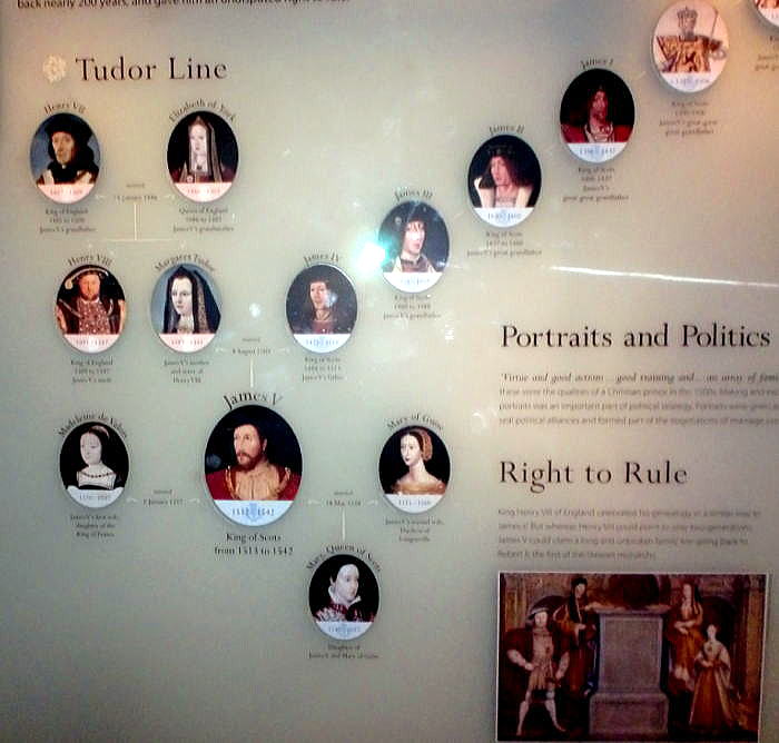 | スコットランド総目次へ* アン王女の庭園1 アン王女の庭園2 ステュアート系譜 ステュアート系譜2 ステュアート系譜3 城の生活1 城の生活2 ここではステュアート家の系譜について紹介します。 ◆ステュアート家の系譜2 以下は、ステュアート家の系譜のつづきです。 1542年 マリー・ド・ギースとジェームス5世の間にスコットランド女王メアリーが誕生。生後6日目に父のジェームス5世が亡くなり、用事であるメアリーはスターリング城で王位を継承し女王となった。 以下はフランスに嫁いだ時のメアリー女王。 ![]() スコットランドのメアリー女王、フランスにて Source:Wikimedia Commons 下の写真はメアリー・ステュアート女王。 ![]() 撮影:青山貞一 Nikon Coolpis S8 以下は、ステュアート家の系譜です。下から二段上にジェームス五世とメアリー・ギーズがおり、最下段にメアリー・ステュアートがいます。 ![]() 撮影:青山貞一 Nikon Coolpis S8 ![]() 撮影:青山貞一 Nikon Coolpis S8 以下はのちに行きましたダンスタッフネイジ城にあったステュアート朝のポスターです。 ![]() 撮影:青山貞一 Nikon Coolpix S8 ◆ステュアート家関連年表 12世紀 ウォルター・フィッツアラン、アサル朝王室執事長に就任。 14世紀 第6代王室執事長ウォルター・ステュアートとロバート1世の娘 マージョリー結婚。 1371年 マージョリーの子ロバート2世即位、ステュアート朝成立。 1390年 ロバート2世死去、ロバート3世即位。 1406年 ロバート3世死去、ジェームズ1世即位。国政は摂政オールバニ 公に握られ、ジェームズはイングランドに滞留。 1424年 ジェームズ1世帰国、戴冠。 1437年 ジェームズ1世暗殺、ジェームズ2世即位。 1460年 ジェームズ2世事故死、ジェームズ3世即位。 1468年 ジェームズ3世、デンマーク王クリスティアン1世の王女マーガ レットと結婚。オークニー諸島とシェトランド諸島を獲得。 1488年 貴族による反乱の末、ジェームズ3世がソーキバーンの戦い で殺害され、ジェームズ4世即位。 1502-13年 スコットランド・イングランド間で「恒久和平」成立。 1503年 ジェームズ4世、イングランド王ヘンリー7世の娘マーガレット・ テューダーと結婚。 1513年 ジェームズ4世、「恒久和平」を破棄しイングランドに侵攻。 フロッドンの戦いで落命、ジェームズ5世即位。 1542年 ジェームズ5世がソルウェイ・モスの戦いの後に死去。メアリー即位。 1567年 内乱によりメアリー譲位。ジェームズ6世即位。 1603年 エリザベス1世死去。ジェームズ6世/1世即位、スコットランドと イングランドは同君連合となる。 1625年 チャールズ1世即位。 1629年 チャールズ1世議会を解散。 1642年 ピューリタン革命起こる。 1649年 オリバー・クロムウェル、チャールズ1世を処刑し共和制樹立。 1653年 クロムウェルが終身護国卿となる。 1660年 護国卿リチャード・クロムウェルが退位し、王政復古。チャールズ 2世即位。 1688年 名誉革命。ジェームズ7世/2世、フランスに亡命。メアリー2世・ ウィリアム3世の共同統治。 1689年 権利章典の制定 1707年 イングランド・スコットランド正式に合併し、グレートブリテン 王国成立。 1714年 アン女王死去、ステュアート朝断絶。 ![]() スチュアート王朝の最後の成員(ジャコバイトの王)ジェームズ・フランシス・エドワード(ジェームズ8世ならび3世)、チャールズ・エドワード、ヘンリー・ベネディクトの3人の墓碑サンピエトロ大聖堂(バチカン)。 Source:Wikimedia Commons ◆歴代国王 スコットランド国王 ロバート2世(1371年 ~1390年) ロバート3世(1390年 ~1406年) ジェームズ1世(1406年 ~1437年) ジェームズ2世(1437年 ~1460年) ジェームズ3世(1460年 ~1488年) ジェームズ4世(1488年 ~1513年) ジェームズ5世(1513年 ~1542年) メアリー1世(1542年 ~1567年) スコットランドおよびイングランド国王 ジェームズ6世/1世(スコットランド:1567年~1625年、 イングランド:1603年 - 1625年) チャールズ1世(1625年 ~1649年) チャールズ2世(スコットランド:1649年~1685年、イングランド:1660年 ~1685年) ジェームズ7世/2世(1685年 ~1688年) メアリー2世(1689年 ~1694年) ウィリアム2世/3世(1689年 ~1702年) アン(スコットランドおよびイングランド:1702年~ 1707年、 グレートブリテン:1707年 - 1714年) ジャコバイトの王 ジェームズ7世/2世(1685年 ~1688年) ジェームズ・フランシス・エドワード・ステュアート チャールズ・エドワード・ステュアート ヘンリー・ベネディクト・ステュアート ステュアート系譜3にづづきます スコットランド総目次へ |
