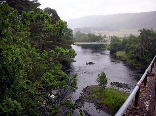 | スコットランド総目次へ* フォート・オーガスタス1 フォート・オーガスタス2 オイック橋 フォート・ウィリアム1 フォート・ウィリアム2 大峡谷水辺公園 ◆オイック橋(The Bridge of Oich、ビクトリア橋とも呼ばれています ) 場所は以下のグーグルマップにあるように、フォートオーガスタスのすぐ南にある橋です。 ![]() 出典:グーグルマップ ![]() 出典:グーグルマップ ![]() 撮影:青山貞一 Nikon Coolpix S8 2012-7 オイック橋(オイッチ橋、ビクトリア橋、アバクホールダー(Aberchalder)とも呼ばれる)は、ジェームス・ドレッジが設計したテーパー原理の吊橋でスコットランドのハイランドにあるアバクホールダー近くのオイック川にかかっています。 橋は1854年に開通し、川を渡って主要な道路へとつながるために1932年まで使われました。(A82から見えます) ![]() オイック橋の遠景 撮影:青山貞一 Nikon Coolpix S8 2012-7 下は実際に通った上の写真とほぼ同じ角度のグーグルマップ、ストリートビューの写真です。但し、ストリートビューの撮影は晴天時です。 ![]() 出典:グーグルマップ ![]() オイック橋 Source: Wikimedia Commons CC BY-SA 4.0, Link 概説 オイック橋は、イングランドから来た技術者ジェームス・ドレッジによって設計されました。ドレッジは橋の特許取得済みのテーパ原理を用いました。 橋は、2つの対向する片持ち梁(カンチレバー)がサスペンション・チェーンによって支持され、古典的な吊り橋の外観を与える二重片持ち梁方式(ダブル・カンチレバー・システム)を採用しています。 橋の全長は155フィート6インチ(47.40メートル)で、2つの主鎖(メイン・チェーン)は17フィート(5.2メートル)離れています。主鎖の各々は、長さが6フィート(1.8 m)から7フィート6インチ(2.29 m)、公称直径が7-8インチ(22 mm)の一連の錬鉄製アイ・ロッドから作られています。 主要なチェーンは高さ8mの花崗岩の塔の上に吊り下げられており、各チェーンの一端は橋の中央部で橋に固定され、他の端部は橋の内陸側の地面の下に固定されています。 チェーンは、塔の12本の平行な金属の棒(ロッド)で構成され、塔からさらに遠くなるにつれて、チェーンの各端に向かって各継ぎ目で1本のリンクによって幅が徐々に減少します。デッキ(橋の床面)は、トラス製の錬鉄製の横木(トランサム)に支えられた木材製となっています。 歴史 下は望遠で撮影したオイック橋です。 ![]() 雨中のオイック橋です 撮影:青山貞一 Nikon Coolpix S8 2012-7 1849年、アバクホールダー近郊のオイック川に架かる古い石橋が洪水により破壊されました。同様の洪水により新しい橋が壊れるリスクを減らすために、古い橋を交換するには、シングル・スパン橋が必要であると判断されました。 イングランドの技術者ジェームス・ドレッジは、このような橋をつくり提供する仕事に従事していました。ドレッジは、1854年に開通した橋のために、自身が特許を取得した「テーパ原理」を使用しました。ドレッジの橋は、1932年に2車線のコンクリート橋が建設されるまで、オイック川を渡る主要道路の自動車交通を支えました。 橋が利用されなくなってからは、荒廃し、公共利用には閉鎖されていました。この橋は現在修理が必要な建物としてリストアップされておる記念碑の一つであり、1997年にスコットランドの歴史遺産協会によって改修され、歩行者用の橋として一般に公開されるようになりました。 「フォート・ウィリアム1」につづきます スコットランド総目次へ* |