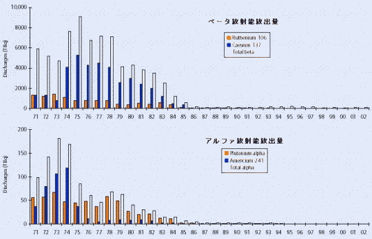 しかし、それ以前にもセラフィールドの再処理施設は、操業当初から北欧にまで至る広域的な海洋汚染や何度もの事故を背景とした周辺住民らへの深刻な健康被害などから論争を引き起こしてきたと言えます。 <セラフィールド工場における処理量と放射能排水量> ところで、セラフィールド核燃料再処理工場における年間の処理量は、表にあるように毎年880トンから1100トン、以下の処理期間中のマグノックスの通算量は4万トンを超えています。 THORPは10年間で約5千トンとなっている。さらにガラス固化の本数は通算で3000本弱となっており、いずれも巨大な量です。 表 セラフィールド工場における年間処理量の推移 ![]() 出典:旧動燃資料 一方、以下のグラフは、セラフィールド工場から海洋への放射能排出の推移です。α放射能排出量、β放射能排出量ともに、1971年から1985年まで膨大な量を海洋に排出していたことが分かります。 ![]() 図 セラフィールド工場から海洋への放射能排出量の推移 出典:BNFL <セラフィールド工場周辺地域への影響> これだけの処理量と海洋への排出量がある施設であれば、周辺地域への環境影響や健康被害があっても不思議ではありません。 たとえば、1983年、英国の地元テレビ番組でセラフィールド工場近くに住む子供たちの小児がんや白血病の発生率は、英国の全国平均よりかなり高いと報道されました。ちなみに工場から2.4km離れたシースケール村では10倍高いということです。 1990年にはマーティン・ガードナー教授(元サザンプトン大の疫学学者、故人)が、「母親の妊娠前に父親がセラフィールド工場で働き放射線被ばくを受けていたことが、子どもたちの白血病および非ホジキン性リンパ腫のリスク因子である」という仮説を発表しています。 さらに2002年には国際的なガン研究の専門誌(International Journal of Cancer)に、セラフィールド再処理工場で働き被ばくした男性労働者の子どもたちは、他の地域の子どもたちに比べて、白血病やリンパ腫など血液の癌の発生率が2倍近く高く、工場があるシースケールでは、15倍も高いリスクがあると発表されました。 これは工場から地域への直接的影響ではなく、セラフィールドの原子力施設で働く被ばく労働者の父親と小児白血病の子どもとの関係についてみたものです。 上記のうち、かなり古い情報だが1983年の件を報じた英国テレビ局の番組内容を以下に示します。