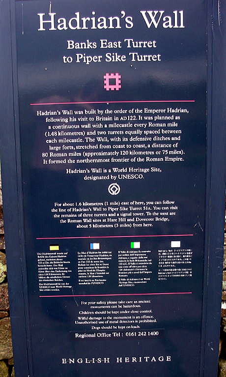 | スコットランド総目次へ* ハドリアヌスの長城 ローマ帝国時代のスコット1 ローマ帝国時代のスコット2 ローマ帝国時代のスコット3 ハドリアヌスの長城のカフェ ハドリアヌスの長城の小さな修道院 下はハドリアヌスの長城の案内板です。 ![]() 出典:青山貞一 Nikon Coolpis S8 下の案内板は、ハドリアヌスの長城探索についての解説です。かなり広域にわたります。 ![]() 出典:青山貞一 Nikon Coolpis S8 下は現在のスコットランドに残るハドリアヌスの長城の一部です。万里の長城になぞらえ、ハドリアヌスの長城と呼ばれています。 ![]() 現在のスコットランドに残るハドリアヌスの長城の一部 Source:Wikimedia Commons , Public Domain, Link ![]() 現在のスコットランドに残るハドリアヌスの長城の一部 出典:NHK BSプラミアムの「ローマ皇帝の歩いた道」 ![]() 撮影:青山貞一 Nikon CoolPix S8 2012-7-25 ![]() 撮影:青山貞一 Nikon CoolPix S8 2012-7-25 現地には要所、要所に、以下のようなかなり詳しい、説明があります。 ![]() 撮影:青山貞一 Nikon CoolPix S8 2012-7-25 ![]() 撮影:青山貞一 Nikon CoolPix S8 2012-7-25 下は上の建築物の礎石です。 ![]() 撮影:青山貞一 Nikon CoolPix S8 2012-7-25 ![]() 残存するハドリアヌスの長城 撮影:池田こみち Nikon CoolPix S10 2012-7-25 ![]() 下部が土に埋もれたハドリアヌスの長城 撮影:青山貞一 Nikon CoolPix S8 2012-7-25 「ローマ帝国時代のスコット3」につづきます スコットランド総目次へ* |