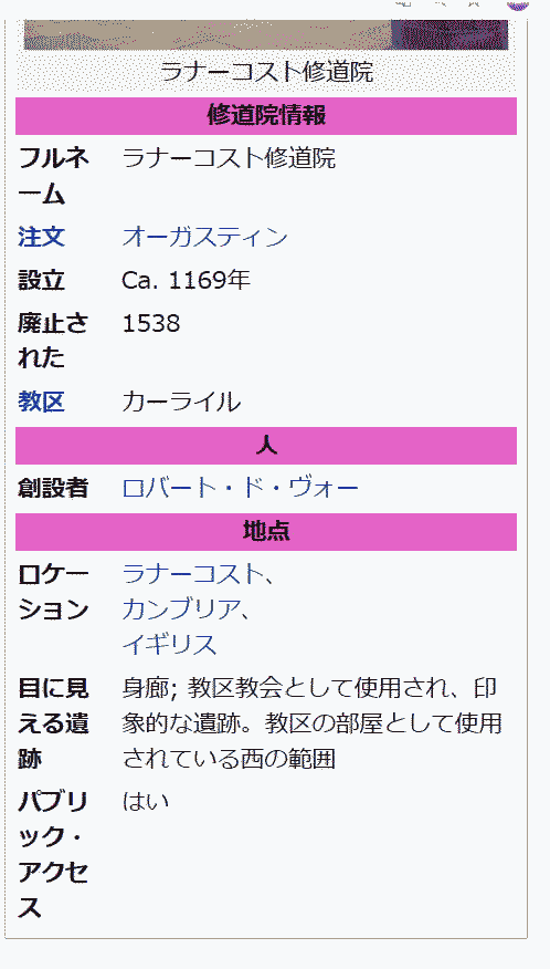 | スコットランド総目次へ* ハドリアヌスの長城 ローマ帝国時代のスコット1 ローマ帝国時代のスコット2 ローマ帝国時代のスコット3 ハドリアヌスの長城のカフェ ハドリアヌスの長城の小さな修道院 ◆ハドリアヌス長城の小さな修道院 ラナーコストは小修道院なので、古い教会もありました。 ![]() ラナーコスト修道院は1165年から1174年の間にロバート・ド・ヴォーによって設立され、アウグスティヌスの 正教会を受容しました。修道院は村に位置し、イングランドのカンブリア州ラナーコストにある、Naworth城に近くにあります。 現在は一般に公開されており、英国遺産の保護者として登録されています。 ![]() メアリーマグダレンの像がある西側の正面 Source:Wikimedia Commns Public Domain, Link 教区教会 ラナーコスト修道院は1538年にヘンリー8世によって一旦解散させられ、修道院の建物として使用され続けていた教会の建物を除いて、修道院の屋根は取り除かれました。17世紀後半、身廊が悪化したため、会衆は改修された北の通路だけを使用しました。 1747年に身廊は再び屋根を付けられましたが、1847年までに修道院はイーストエンドの屋根が倒壊するほどの荒廃状態にありました。しかし、1849年までに、アンソニーサルヴィンによる大規模な修復の後、教会は再び使用されました。1870年代には、カーライルの建築家CJファーガソンによってさらに修復が行われました。 解散時、所有権はDacre家族に渡され、18世紀初頭にはHowardsに渡されました。1929年に修道院の遺跡は公有地になり、今日では英国の遺産によって管理されています。 ![]() 存在記録ローマン碑文、Legio VI Victrixにハドリアヌスの長城近くには、今、小修道院の壁に組み込まれています。 Source:Wikimedia Commns By Karl and Ali, CC BY-SA 2.0, Link ![]() 撮影:青山貞一 Nikon CoolPix S8 2012-7-25 ![]() 撮影:青山貞一 Nikon CoolPix S8 2012-7-25 ![]() 南からラナーコスト修道院。修道院の建物の基礎は手前にあります。 Source:Wikimedia Commns CC BY-SA 3.0, Link 「アニック城1」につづきます スコットランド総目次へ* |