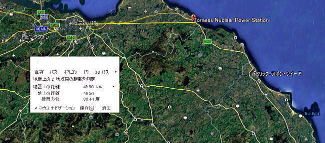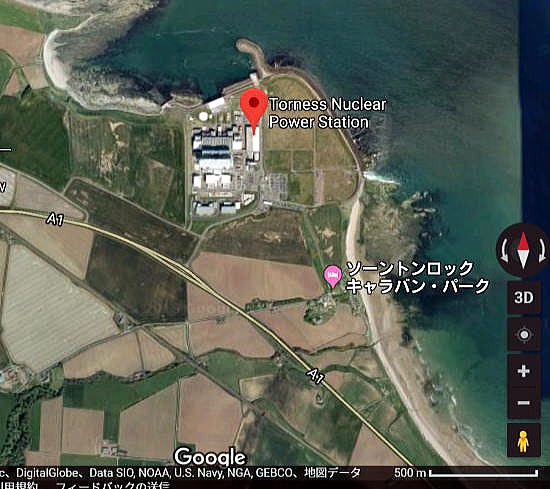 | スコットランド総目次へ * スコットランドという国 トーネス原発1 トーネス原発2 トーネス原発3 スコットランド東岸を北上し、エディンバラに戻る時、私たちはスコットランドにあり稼働している原発、トーネス原発に立ち寄りました。 ◆トーネス原発の概要 以下はトーネス原子力発電所の位置です。私たちはアネック城を後にスコットランドの東岸を北上し、エディンバラに戻る途中に立ち寄りました。 エディンバラとトーネス原発の距離は40~50kmなので、万一事故が起き東風が吹いていると首都、エディンバラへの影響は ![]() 出典:グーグルマップ 下の地図を見ると、トーネス原発とスコットランドの首都エジンバラ市の中心との距離は約40kmで、かなり近接していることが分かります。 ![]() 出典:グーグルマップ グーグルアースのGIS機能を使い直線距離を測ると49.5kmであることがわかりました。 ![]() 出典:グーグルアース しかもトーネス原発のすぐそばを英国を南北に走る幹線道路の国道1号線(A1)が走っています。もし、トーネス原発が事故を起こすと、イングランド側からスコットランドの首都エジンバラへの物資の輸送が止まらざるを得ないことになりかねません。 ![]() 出典:グーグルマップ 下は衛星写真で見たトーネス原子力発電所です。 ![]() 出典:グーグルマップ 以下はトーネス原子力発電所の施設配置の写真です。 ![]() 出典:グーグルマップ 堤防 以下は車を停めこれからトーネス原子力発電所の堤防と温排水施設に行くところの池田こみちです。 ![]() スコットランドに残る4基の原発の2基があるトーネス原発にて 撮影:青山貞一 Nikon Coolpix S8 以下は青山貞一です。 ![]() スコットランドに残る4基の原発の2基があるトーネス原発にて 撮影:池田こみち、Nikon CoolPix S10 2012-7-25 ![]() 撮影:青山貞一 Nikon Coolpix S8 下は到着時に撮影したトーネス原子力発電所です。 ![]() 撮影:青山貞一 Nikon Coolpix S8 以下はトーネス原子力発電所の外観です。 ![]() スコットランドのトーネス原子力発電所 Source:Wikimedia Commons CC BY-SA 4.0, Link 概要 トーネス原子力発電所(Torness Nuclear Power Station)はスコットランドの原子力発電所です。単独の発電所としては英国でもっとも新しい原発です。1980年に建設が開始され、1988年に運転が開始されました。 当初は南スコットランド電力局(SSEB)が運営していました。おおよそエディンバラの東部50kmの位置にあり、スコットランドイースト・ロージアンのダンバー近くに存在しています。 地域のランドマークになっており、A1号線やイースト・コースト本線からよく見えます。 歴史 地域計画当局や12以上の関係団体などの広範な議論の後、1973年、南スコットランド電力局(SSEB)はトーネスを原子力発電所の建設地とするためにスコットランド大臣の承認を求めました。 1974年2月、ダンバーで電力局の提案を説明書の公表が行われ、1974年6月には公聴会が行われました。 トーネスに原発を建設することについては、広い範囲で反対がありました。さまざまなキャンペーン団体が原子力発電所の環境と人的コスト問題を強調するために一体となりました。 1978年5月には4000人がダンバーからトーネスへ行進しています。彼らの多くが「トーネスの原発建設を防ぐために必要なすべての非暴力的措置を行う」宣言にサインしました。 SSEBは英国の民生用原子炉を次の段階に進めるため、改良型ガス冷却炉(AGR)、蒸気発生重水炉(SGHWR)、軽水炉(LWR)、高温原子炉(HTR)の4種類の原子炉設計案を提出し、その後英国政府による検討が行われました。 1975年2月、スコットランド大臣はSSEBに将来の原発をトーネスに設置する法律上の承諾を与え、4つの原子炉形式を検討した後、1978年5月24日にAGRの建設への承諾がおこなわれました。 建設は国家原子力会社(NNC)として知られるコンソーシアムによって、1980年にはじめられました。原子炉はNNCが、タービンはゼネラル・エレクトリック・カンパニーが供給しました。 トーネス原発は1988年5月25日に英国で最後の第2世代原子力発電所として委託されたものです。2基のAGRを保有しており、ピークレートで1364MWeを発電可能です。 英国の発電市場の自由化の際、トーネス原発の運営はブリティッシュ・エナジーの一部として民営化されたスコティッシュ・ニュークリアに譲渡されました。さらにその後の2009年1月ブリティッシュ・エナジーはフランス電力(EDF)に買収され、英国子会社のEDFエネルギーに統合されました。2023年までの運用が予定されています。
