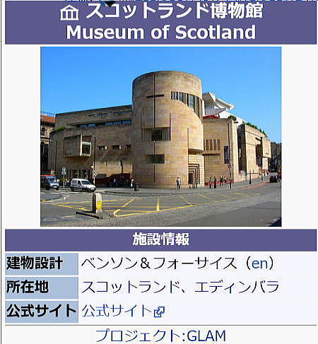 | スコットランド総目次へ * 国立スコットランド博物館1 国立スコットランド博物館2 国立スコットランド博物館3 国立スコットランド博物館4 国立スコットランド博物館5 国立スコットランド博物館6 国立スコットランド博物館7 国立スコットランド博物館8 国立スコットランド博物館9 国立スコットランド博物館10 国立スコットランド博物館11 国立スコットランド博物館12 国立スコットランド博物館13 国立スコットランド博物館14 国立スコットランド博物館15 国立スコットランド博物館16 国立スコットランド博物館17 国立スコットランド博物館18 国立スコットランド博物館19 国立スコットランド博物館20 国立スコットランド博物館21 国立スコットランド博物館22 ◆スコットランド博物館(Museum of Scotland)の概要と歴史 ![]() Source:Wikipedia ここでは以下のグーグルマップにあるようにロイヤルマイルからわきに入ったところにある国立スコットランド博物館について解説します。近くにはエディンバラ城やセント・ジャイルズ大聖堂があります。 ![]() Source: Google Map なお、以下のグーグル地図にあるように、この辺りには、スコットランドを代表する博物館、美術館が多数あります。 ![]() Source: Google Map 以下は博物館の新しいエントランスです。 ![]() 博物館の新しいエントランス Source:Wikimedia Commons CC 表示-継承 3.0, リンクによる 以下は国立スコットランド博物館に通ずる地下のアプローチです。 ![]() Source:Wikimedia Commons CC BY-SA 3.0, https://commons.wikimedia.org/w/index.php?curid=15924013 ◆博物館の名称について スコットランド博物館(Museum of Scotland)は、スコットランド、エディンバラ)にある博物館の建物。主にスコットランドの歴史、民族、文化に関連する展示を行っている。スコットランド国立博物館の部分になっています。入館料無料。 1998年、エディンバラの中心部、チェンバーズストリートとジョージ4世橋の交差点に建設され、当時の王立博物館(Royal Museum)に隣接した。 1985年にスコットランド国立考古学博物館(National Museum of Antiquities of Scotland)が合併された時に、スコットランドの歴史や民族関連の収蔵物が数多く委譲されました。 2006年、スコットランド国立博物館(英語:NationalMuseum of Scotland)に改称された。なお博物館の建物自体は隣の19世紀の建物とは違った独特の外観をしている。 ◆スコットランド博物館の建物 以下は博物館の正面と裏側の外観です。 ![]() 国立スコットランド博物館 Source:Wikimedia Commons CC BY-SA 3.0, Link ![]() スコットランド王立博物館建物の後正面 Source:Wikimedia Commons CC BY-SA 3.0, Link ![]() 撮影:青山貞一 Nikon CoolPix S8 スコットランド博物の建物の建築にあたっては、博物館側がチャールズ皇太子に十分相談することなく計画を進めたために皇太子が出資を取り止めるといったトラブルがありました。 当初は王立博物館の拡張工事として着工する予定でしたが、結果的には独立したひとつの博物館とすることとなりました。(ただし内部でつながっています。) 外観はスイス人建築家ル・コルビュジエ風の幾何学的な建築物とする予定でしたが、一方でスコットランド文化、例えば、円塔、城塞、建築物などの意匠を多く取り入れることとなりました。 マレーから取り寄せた黄金色の砂岩を外装に利用したことから、建築家ゴードン・ベンソンは「(建物自体がスコットランドの風土を表す)最古の展示だ」と語っています。1999年、スターリング賞にノミネートされています。 以下はマウスを動かすことで、360度見ることができます。 ※ 国立スコットランド博物館周辺の写真(グーグル) ※ 国立スコットランド博物館内部のの写真(グーグル) 以下は国立スコットランド博物館から見たエディンバラ城です。この角度は新味があります。 ![]() 国立スコットランド博物館から見たエディンバラ城 Edinburgh Castle as seen from the 国立スコットランド博物館 Source:Wikimedia Commons CC BY-SA 3.0, Link 概要 スコットランド博物館(Museum of Scotland)は、スコットランド、エディンバラ)にある国立の博物館です。主にスコットランドの歴史、民族、文化に関連する展示を行っています。入館料は無料。 1998年、エディンバラの中心部、チェンバーズストリートとジョージ4世橋の交差点に建設され、当時の王立博物館(Royal Museum)に隣接していました。 1985年にスコットランド国立考古学博物館(National Museum of Antiquities of Scotland)が合併された時に、スコットランドの歴史や民族関連の収蔵物が数多く委譲されました。 2006年、国立スコットランド博物館(英語:国立スコットランド博物館)に改称されました。なお博物館の建物自体は隣の19世紀の建物とは違った独特の外観をしています。 ◆入ってびっくり 何と、博物館の一階には、いきなり身長が180cmあったメアリー・スチュアート女王が横たわる墓のレプリカレあります。これにはびっくりです。 本物は息子のジェームス6世によりロンドンのウエストミンスター寺院にエリザベス一世と並んで葬られています。 ※メアリー・スチュア