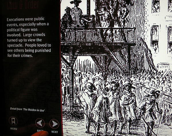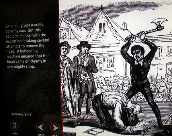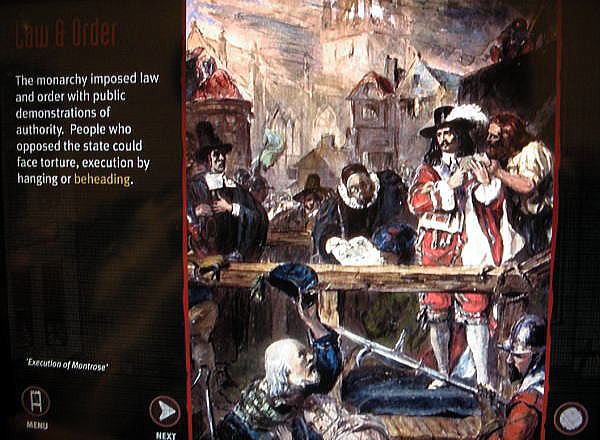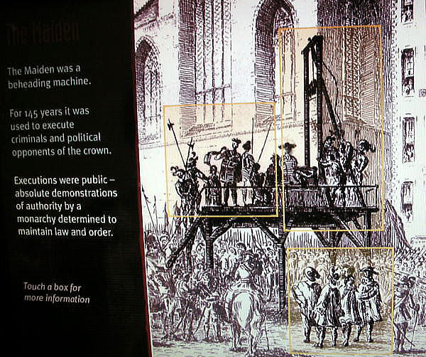 | スコットランド総目次へ* 国立スコットランド博物館1 国立スコットランド博物館2 国立スコットランド博物館3 国立スコットランド博物館4 国立スコットランド博物館5 国立スコットランド博物館6 国立スコットランド博物館7 国立スコットランド博物館8 国立スコットランド博物館9 国立スコットランド博物館10 国立スコットランド博物館11 国立スコットランド博物館12 国立スコットランド博物館13 国立スコットランド博物館14 国立スコットランド博物館15 国立スコットランド博物館16 国立スコットランド博物館17 国立スコットランド博物館18 国立スコットランド博物館19 国立スコットランド博物館20 国立スコットランド博物館21 国立スコットランド博物館22 以下はスコットランドで過去使われた拷問器具と処刑の歴史と方法についての展示である。 拷問/処刑の歴史と方法 ![]() 撮影:青山貞一 Nikon CoolPix S8 ![]() 撮影:青山貞一 Nikon CoolPix S8 ![]() 撮影:青山貞一 Nikon CoolPix S8 ![]() 撮影:青山貞一 Nikon CoolPix S8 ![]() 撮影:青山貞一 Nikon CoolPix S8 The Maiden(メイデン) Scottish Maidenとはスコットランドで使用されていた処刑道具である。ギロチンと同様に約75ポンド(34kg)の斧の刃が落下することによって首を切断する。スコットランド王ジェームズ6世の摂政だった第4代モートン伯爵ジェームズ・ダグラスがイングランドのハリファックス断頭台を参考にして導入したと言われており、1564年から1708年まで使用され150人以上が処刑されたが、その中にはモートン伯自身が含まれている。現在は国立スコットランド博物館に展示されている。(出典:英文Wikipediaから翻訳) 145年間にわたって犯罪者や王に反対する政治犯などの処刑のために使用されていた。独裁者の権威と法を維持するために、刑の執行は完全公開で行われた。 ![]() 撮影:青山貞一 Nikon CoolPix S8 君主制は権威の公的実証で法と命令を課した。それに逆らった人々は、公開の 絞首刑か断頭の刑に処せられた。 ![]() 撮影:青山貞一 Nikon CoolPix S8 断頭は、通常斧で行われた。しかし、執行者が頭を切り落とすまで何回も斧を振り下ろさなければならないのは面倒なことだった。そこで、一回の強力な一撃で確実に頭を切り落とせる機械が開発されることとなった。 ![]() 撮影:青山貞一 Nikon CoolPix S8 特に政治的な人物が関与するときには、処刑は公開で行われた。大勢の群衆が処刑を見に集まってきた。人々は誰かが犯罪のために処刑されるのを見るのを喜んでいた。 ![]() 撮影:青山貞一 Nikon CoolPix S8 処刑は公開の広場で行われた。エディンバラで有名な処刑場所は旧市街の広場(Mercat Cross)だった。そこは、処刑されるまで犯罪者たちが収容されている古い刑務所(Tolbooth)に近かった。 国立スコットランド博物館5につづきます スコットランド総目次へ* |