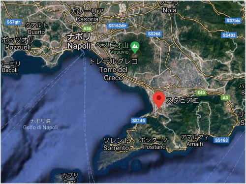 ![]() カステッランマーレ・ディ・スタービア( Castellammare di Stabia) Source:Wikimedia Commons CC 表示-継承 4.0, リンクによる <ヴェスヴィオ総合メニュー> カステッランマーレ・ディ・スタービア(コムーネ) スタビアエ遺跡1 スタビアエ遺跡2 スタビアエ遺跡3 スタビアエ遺跡4 スタビアエ遺跡5 スタビアエ遺跡6 スタビアエ遺跡7 スタビアエ遺跡8 スタビアエ遺跡9 スタビアエ遺跡10 スタビアエ遺跡11 スタビアエ遺跡12 スタビアエ遺跡13 スタビアエ遺跡14 スタビアエ遺跡15 本稿の解説文は、現地調査に基づく解説、写真撮影に加え、Wikipediaのイタリア語版を中心に英語版からの翻訳及び日本語版を使用しています。また写真は現地撮影分以外にWikimedlia Commons、さらに地図はグーグルマップ、グーグルストリートビューを使用しています。その他の引用に際しては、その都度引用名をつけています。 ◆スタビアエ遺跡1 Source:Wikipedia English 以下はスタビアエの位置です。ポンペイの真南。ヴェスヴィオ山の南南東にあります。 私達は、ナポリからソレントなどへレンタカーで行くときは、必ずスタビアエを通っていました。 ![]() スタビアエの位置 出典:グーグルマップ ![]() スタビアエの位置 出典:グーグルマップ ![]() スタビアエまたはプテオリ港 Source:Wikimedia Commons Public Domain, Link <概要> スタビアエ(Stabiae)は、現代の町カステッラ・マーレ・ディ・スタビア(Castellammare di Stabia)の近く、ポンペイの南西約4.5kmに位置する古代都市でした。ポンペイのように、ベスビオ山からわずか16 km(9.9マイル)のこの海辺のリゾートは、西暦79年のベスビオ山の噴火でテフラ灰に大部分が埋もれてしまい、その深さは、浅いところでも、最大5メートルありました。 注)テフラ Wikipediaより テフラとは、アイスランドの地質学者シグルズール・ソラリンソン によって定義された語で、火山灰・軽石・スコリア・火砕流堆積物 ・火砕サージ堆積物などの総称。火山灰などの火山噴出物中の ケイ素酸化物SiO₂ の組成や含有する微量元素を分析することで 起源となった火山の特定が行われる。 スタビアエは、ローマ時代の別荘で最も有名でありまた、最も素晴らしい建築的、芸術的遺跡のいくつかを提供しています。それらは、ローマ時代全体を通じて、保存状態が良く、巨大で、エリートの海辺の別荘が最も集中していた場所でした。別荘はナポリ湾を見下ろす高さ50メートルの岬にありました。 しかし、ポンペイやヘルクラネウムとは異なり、スタビアエは1782年まで発掘後に埋め戻されていたため、旅行者の目的地(観光地)としての地位を確立できず、その後、不当にその影に隠れていました。これらの別荘から取り出された物やフレスコ画の多くは、現在ナポリ国立考古学博物館に収蔵されています。 歴史 ![]() スタビアエの市門 Source:Wikimedia Commons CC BY-SA 3.0, Link 紀元前7世紀からその良好な気候と、戦略的、商業的な重要性からスタビアエにへの定住/居住が始まり、1957年にグラニャーノ(Gragnano)とサンタ・マリア・ラ・カリタ(Santa Maria la Carita) の間に位置するマドンナ・デッレ・グラツィエ(Madonna delle Grazie)から発見された広大なネクロポリス(墓地/埋葬場所)で見つかった資料に刺激を受けて記録が文書としてまとめられることになりました。 コリント式、エトルリア式、カルシディアン式、アッティカ式などの輸入陶器を含む300を超える巨大墓地ネクロポリスの墓地遺跡は、町が主要な商業的接点を持っていたことを明確に示しています。 15,000㎡(160,000平方フィート)の面積をもつ巨大墓地ネクロポリスは、紀元前7世紀から3世紀の終わりまで使用され、エトルリア人などの新たな人々の到来によって複雑な人口の変化を示し、それに伴って多くの新たな接点が広がっていったのです。 スタビアエには小さな港がありましたが、紀元前6世紀までには、はるかに大きなポンペイの港によってすでに影が薄くなっていました。そこは後にオスカン(オスカン語を話すカンパニアの古代民族)の定住地となりましたが、後に5世紀にはサムナイト(オスカン語を話す古代ローマ部族)がオスカンの町を乗っ取ったようです。 サムナイトの到着により、スタビアエのまちは近くのポンペイの開発のために、突然に社会的、経済的減速に見舞われました。このことは、埋葬がほぼ全くなくなったことからも明らかです。 しかし、紀元前4世紀半ばにサムナイトの影響がより顕著になると、スタビアエはゆっくりと回復し始め、2つの新しい巨大墓地を建設する必要がありました。その一つは、1932年に中世の城の近くで発見され、もう一つは、スカンツァーノ(Scanzano)で発見されました。 おそらく、女神アテナに捧げられたと思われる聖域(サンクチュアリー)が、プリヴァティ(Privati)付近に作られました。 その後、スタビアエは、軍事港となったヌセリア連邦の政治的および行政的体制を採用し、その一部となりましたが、ポンペイ、ヘルクラネウム、ソレントほど自治権を享受していませんでした。 紀元