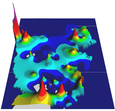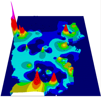 Super SPLINEは平面上に点在する数値を面的に補間する2次元スプライン補間システムです。