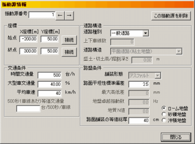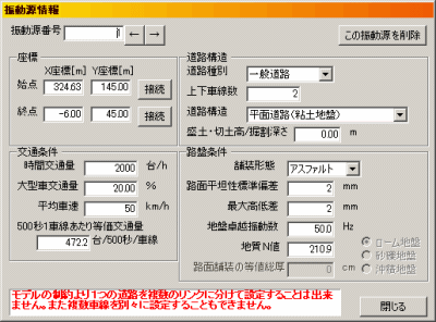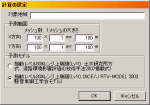 「INCE/J RTV-MODEL 2003」(日本騒音振動制御工学会のモデル、エネルギーモデルであり、任意の形状の複数車線の平面道路にきめ細かくデータを設定した予測に対応) |