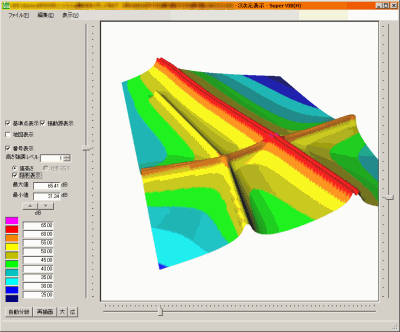 ・コンター(等振動レベル線図)表示(カラー・モノクロ)
