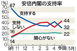 | 内閣支持率32%に急落 不支持率は44% 毎日世論調査 |