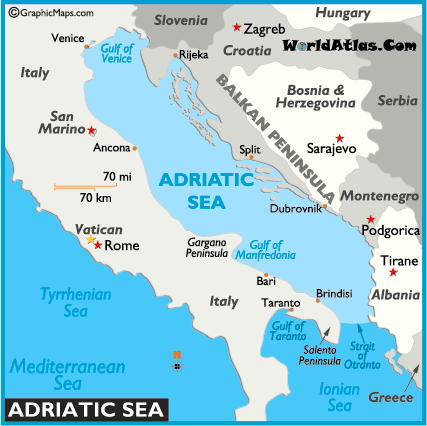 Sea)はイタリア半島とバルカン半島に挟まれた狭く細長い海、その湾奥にはかつて欧州有数の都市国家、ヴェネチア共和国(今のイタリアのベニス)がある。
