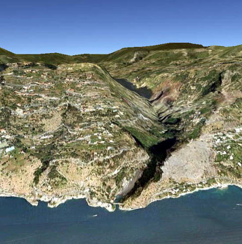 アマルフィ、ミノーリの上空からソレント半島の先端(カントーネ)を見た立体図