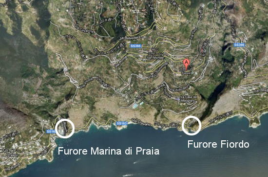 左側が Furore Marina di Praia、右側が Furore Fiord