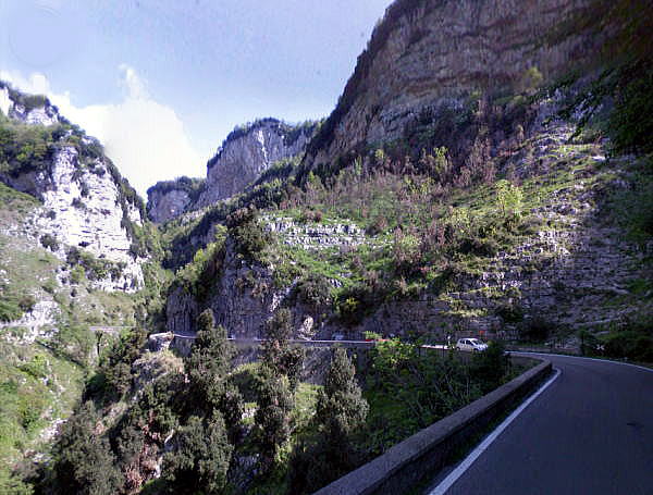 ポジターノから海岸沿いにアマルフィに向かって狭く古い道路を走る。プライアーを過ぎて少し進むといきなり渓谷の奧深くに入るヘアピンカーブに出会う。そしてここからがフローレである。