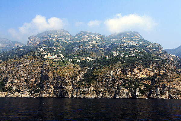 急峻な断崖絶壁の地形にカントーネ、ポジターノ、アマルフィなどのまちがへばりついている