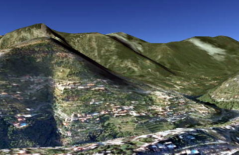 ラヴェッロ、アマルフィ、ミノーリの上空からソレント半島の先端(カントーネ)を見た立体図