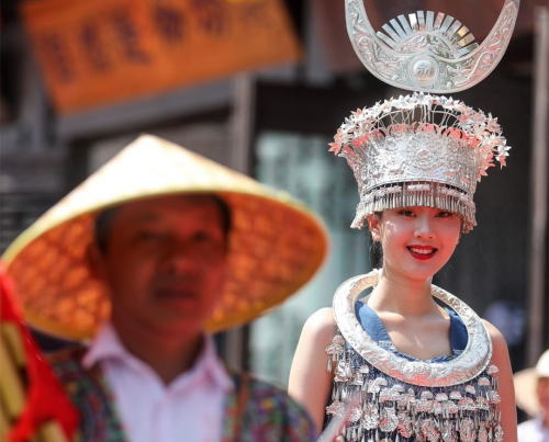 中国南西部貴州省のQiandongnanミャオ族・ドン族自治州Danzhai県Wanda Townで見られるミャオ族の人々。XINHUA(新華社) |