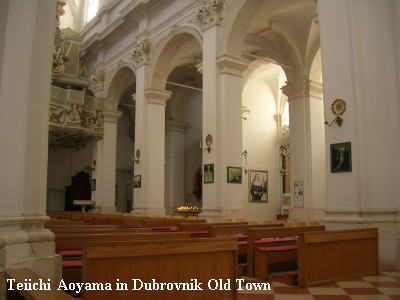 ![]() 11.小噴水 この小噴水も、大噴水同様、1438年にイタリアのデザイナーであるオンフォリオ・デラ・カーバによって設計され、イタリア・ミラノの彫刻家、ペーター・マリディノフによって彫刻が行われた。 小噴水は、聖ブラホ教会の隣に設置されている。 以下は、聖ブラホ教会側から見たカテドラル(大聖堂)である。ドブログニクの聖母大聖堂(カテドラル)は、イタリア、ウルビナの建築家であるブゥファリィニの設計により18世紀に築かれた。ドブロブニクには、それ以前には、7世紀にビザンチン様式のカテドラル、12世紀には壮大なロマネスク様式のカテドラルがあったが、1667年の大地震でいずれも崩壊し、現在の姿に再建されている。 ![]() 12.聖ブラホ教会側から見たカテドラル(大聖堂) この大聖堂には宝物殿があり、ドブロブニク共和国の豊かさを象徴する数々の貴重な宝物が保管されている。 ![]() 12.カテドラル(大聖堂) ![]() 12.カテドラル(大聖堂)の内部 カテドラル内部は、16世紀に画家のティタンによる祭壇状の聖母被昇天聖画と、1758年に大理石でつくられた聖イヴァン・メポムクの祭壇がある。 ![]() 12.カテドラル(大聖堂)の祭壇 ![]() 12.カテドラル(大聖堂)の祭壇 ![]() 12.カテドラル(大聖堂)の内部 大聖堂の西側には、詩人のイヴァン・グンドゥリッチを記念してブロンズ像がグンドゥリッチ広場に建てられている(下の写真参照)。 ![]() 1892年、イヴァン・レンディッチによりグンドゥリッチ広場に建てられた像 この彫像の裏には、オスマントルコ時代を物語るモニュメントが見れる。 下の写真は、ドブロブニク旧市街の港。ポールポレーラの詞のなかでも賛辞された聖イヴァン砦(写真左)は、中世のドブロブニク共和国時代、外海から旧市街への外的の侵入を防いできた。同時に、この港は、商才にもたけたドブロブニク市民が世界の海原に船で出向した一大拠点でもある。 ![]() 13.聖イヴァン砦と19.港 中世の黄金時代、ドブロブニク共和国(ラグーサ共和国)は、文化、経済の両面で飛躍的な発展を遂げ、近隣諸国にその力を誇示していた。なかでも、アドリア海沿岸地域の複雑に入り組んだリアス式沿岸の海洋地形をベースにした海外貿易、商業が盛んとなっていた。塩貿易はその重要なひとつであった。 ![]() 13.聖イヴァン砦(写真中、左の構造物) ![]() 13.聖イヴァン砦(近くで見るといかに巨大な砦であるかが分かる) ![]() 13.聖イヴァン砦の地先にある19.港の入り口の灯台 ![]() 19.港からみたドブログニク旧市街外の景色 19.港からみたドブログニク旧市街外の景色である。背後の山も見える。この山頂にはさまざまな施設があり、セルビアモンテネグロとの内戦では激しい攻撃を受けた。 ![]() 19.港からみたドブログニク旧市街外の景色 下は9.ドミニコ会修道院及び14.レヴェン砦に近いプローチェ門。この門は、15世紀、市街に入る東の玄関口として構築された。プローチェ門は城壁に気づかれたアシモン塔の上に気づかれることで、外部からの侵入を防いでいた。 ![]() プローチェ門 ![]() プローチェ門 Source:Atlas Pile, Dubrovnik 2006 ![]() プローチェ門 参考・引用文献 ・ドゥブロブニク、Zagreb 2001 ・Annabel Barber, Visible Cities Dubrovnik, 2006 ・Dubrovnik in History, 2006 つづく |